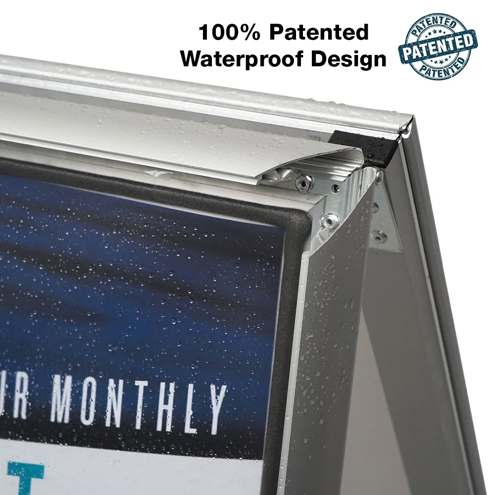 • Patented waterproof design uses rubber gaskets to prevent liquid seepage onto posters