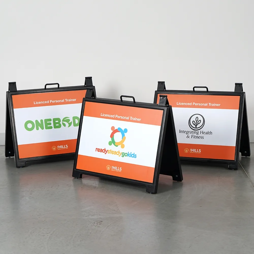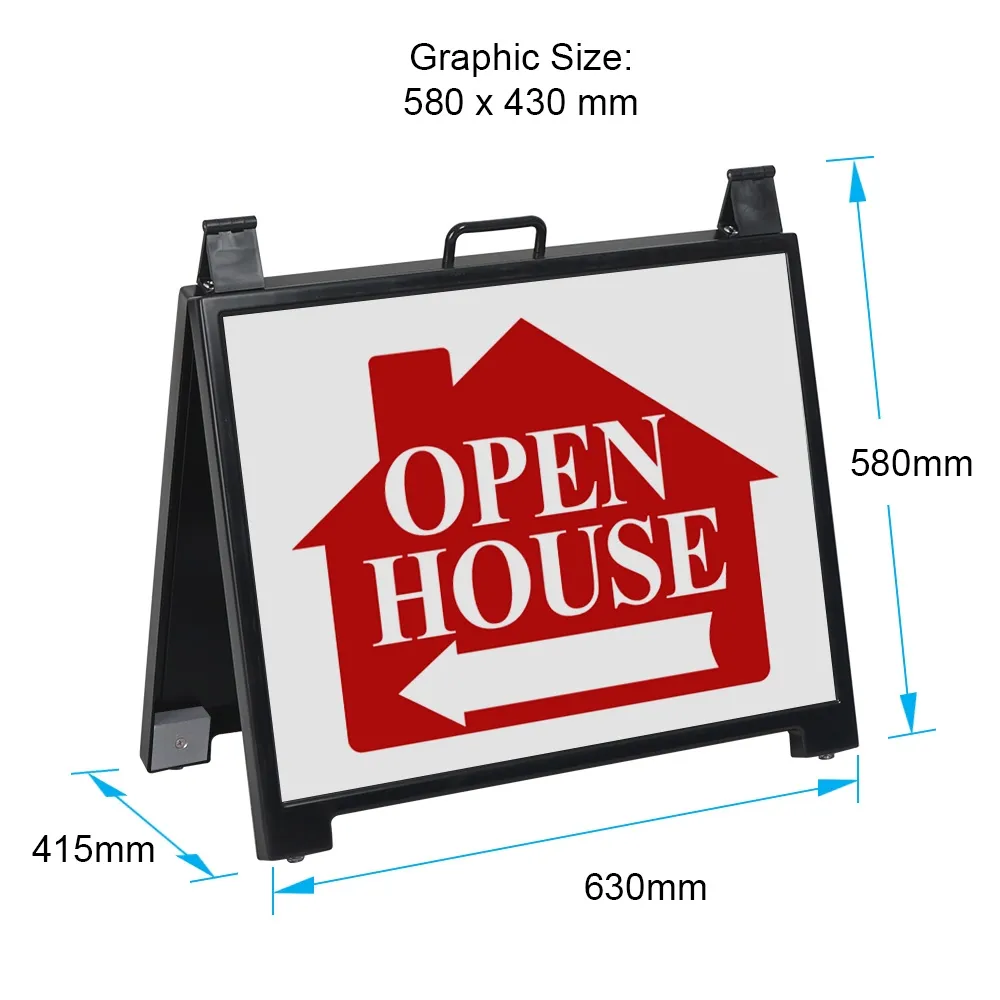 - A frame printed signs include (2) 580 x 430mm custom sign boards