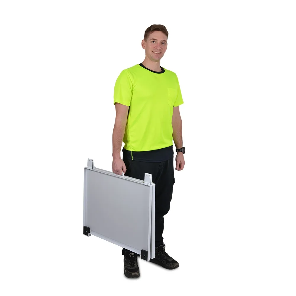 The sign is made from vac formed styrene, providing a strong and durable display that holds up well to use in the above mentioned types of heavily-trafficked areas. The stand uses 4 rubber feet to help keep the stand in place, with weights above the rubber helping to keep it stabilised once upright. Order today by 3pm EST to receive same day despatch to anywhere in Australia when in stock, only from Slimline Warehouse!