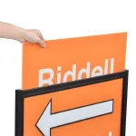 The artwork board on display simply slides into a slot on the top of the sign, so you could keep a number of boards on hand to rotate your message according to the products you have in stock or the time of year.