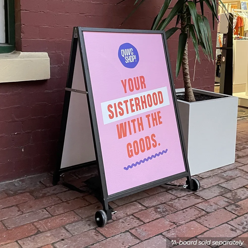 - A frame sign kit turns sandwich boards into stable, easily movable displays!