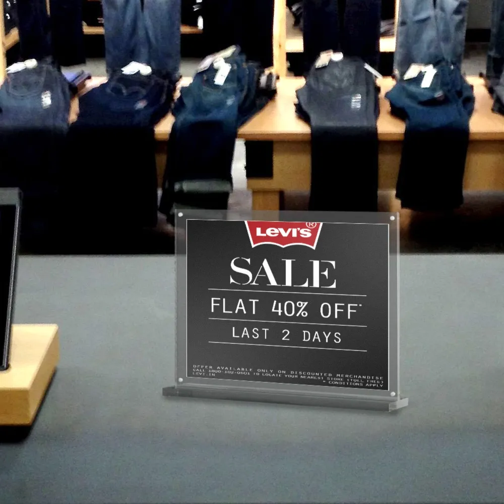 These acrylic retail displays make placing promotional information around your business easy in a stylish manner. Drink specials or menu items at restaurants & pubs, or bank promotions are just some of the useful ways our customers have employed these frames. The dual-sided frame allow advertisements to be placed on both sides to reach out to more customers.