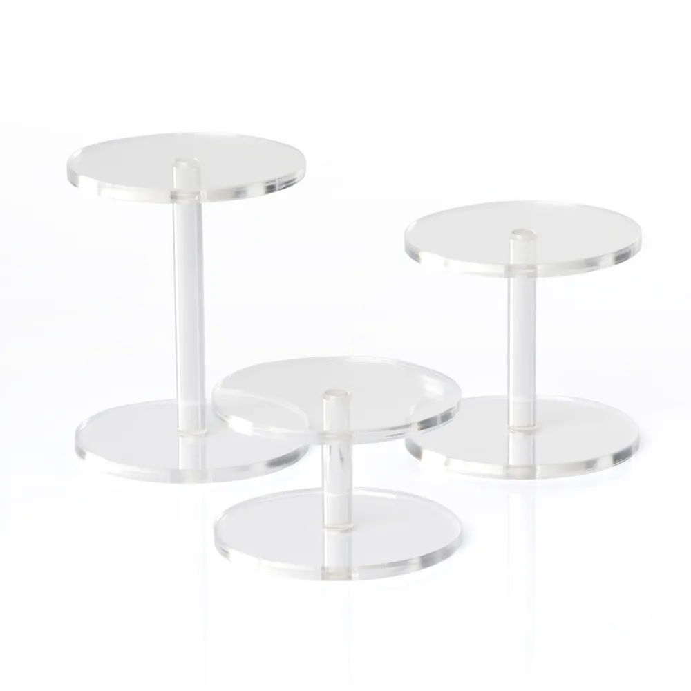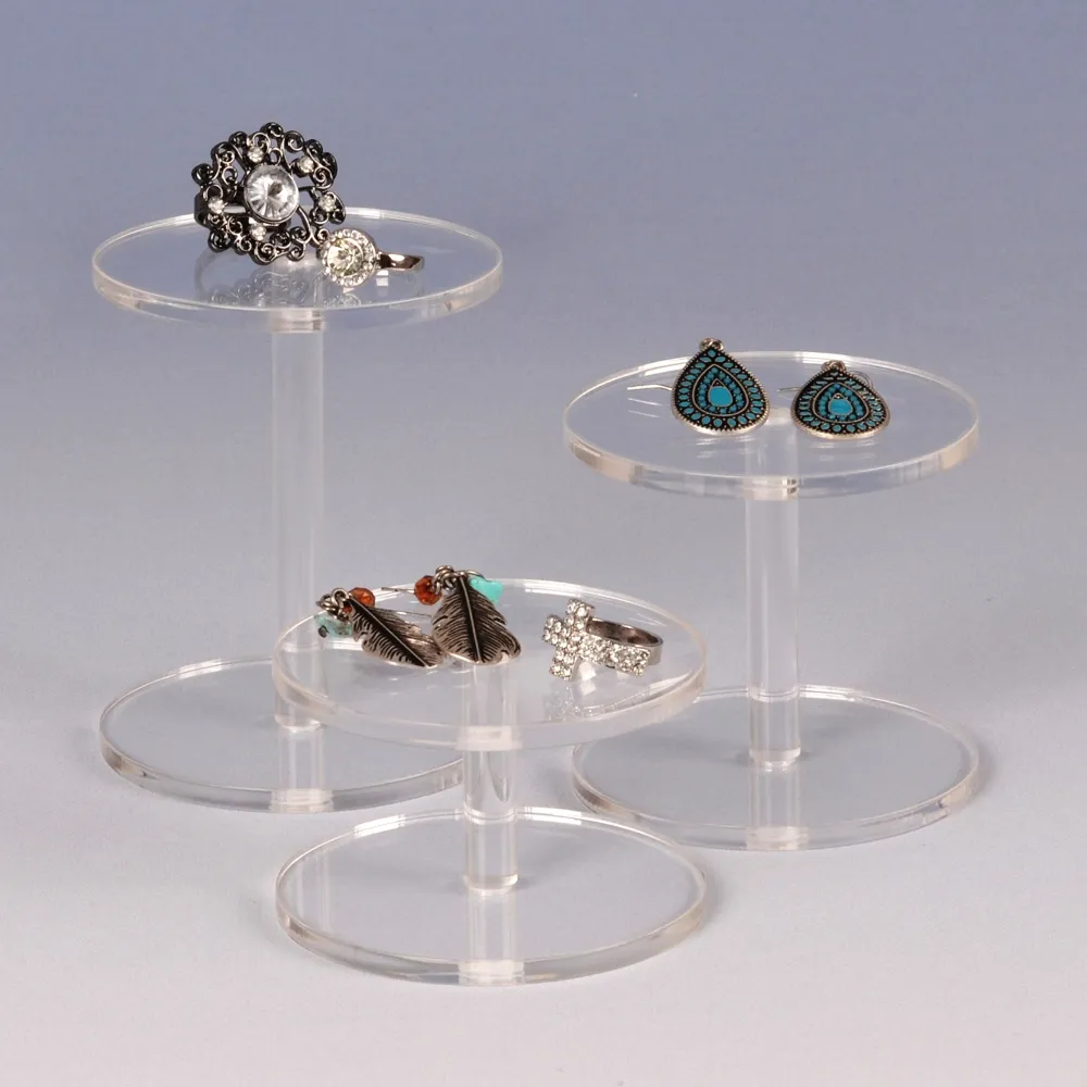 This round acrylic riser is made from 3mm thick polished clear acrylic to offer a durable display that has the look of glass without the cost! The polished edges only add to the allure of these stands. These tiered jewelry displays have been purchased by many different companies to great success, including retail stores, trinket shops, bakeries, cafes, shopping centres, make-up counters, and jewellry stores.