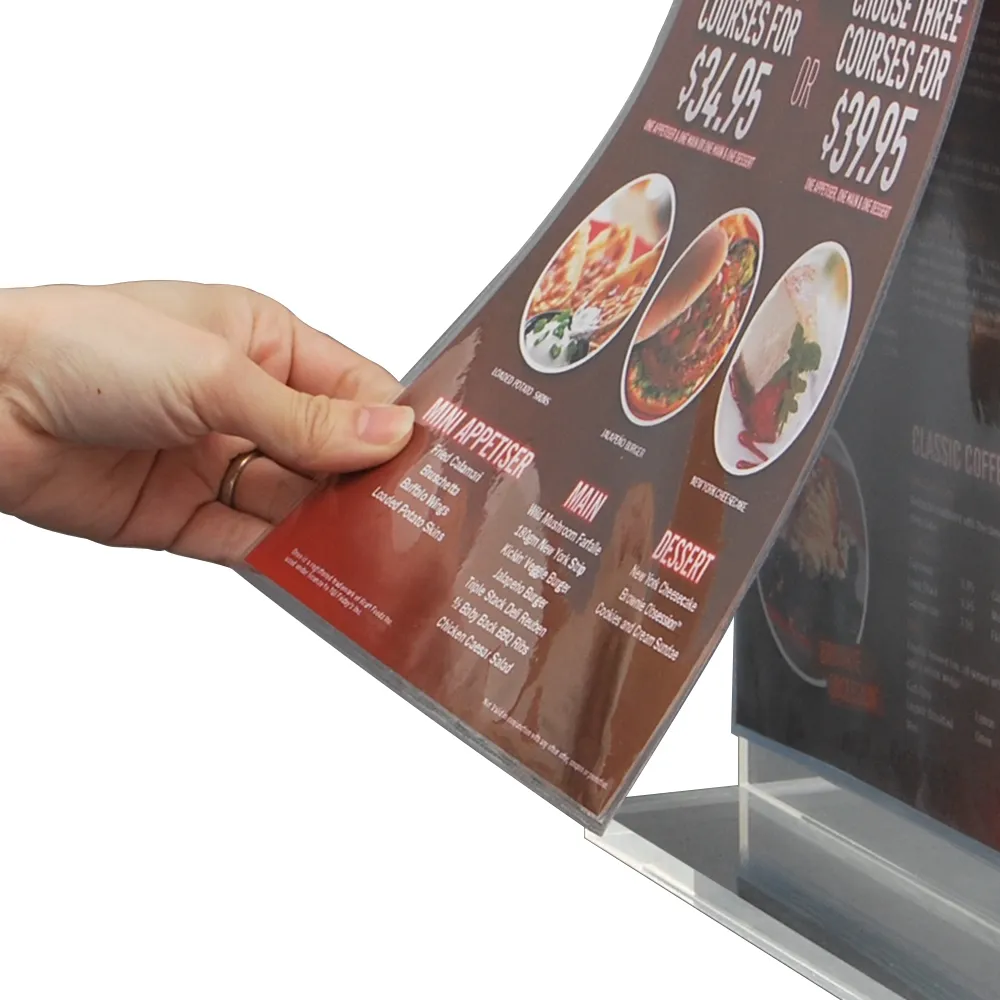 These vinyl pockets are used in pubs, restaurants, and cafes to display menu items, promote upcoming events, and other information. Your purchase includes a set of (10) individual pockets are dual-sided to display a total of (20) signs at once! The clear vinyl protects signs from getting dirty whilst on display and are easy to flip around the menu roll to see all the available information. The pockets have a large slit at the top to easily be attached to the menu roll's metal rings. Display A4 (210 x 297mm) sized signage within each pocket in portrait orientation. Slimline Warehouse has same day shipping available with this and most other in stock products if bought by 3pm AEST, buy online today!