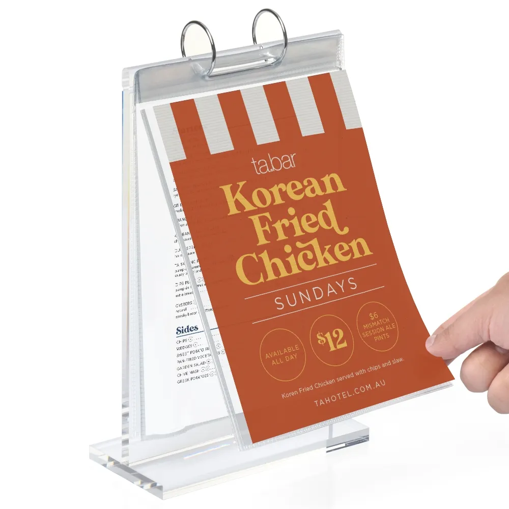 Add to your existing menu roll with this set of vinyl pockets! These pockets are each designed to hold A5 (210 x 148mm) standard sized graphics in portrait orientation, perfect for displaying menu items, promotional graphics, and more in pubs, cafes, and restaurants. The simple slide-in design makes it easy to add in your signage, with the clear pockets offering visibility on both sides to display a total of (20) signs with these pockets! A large slit on the top makes adding these to the menu roll rings simple. Order online by 3pm AEST to receive same day shipping to anywhere in Australia, only from Slimline Warehouse!