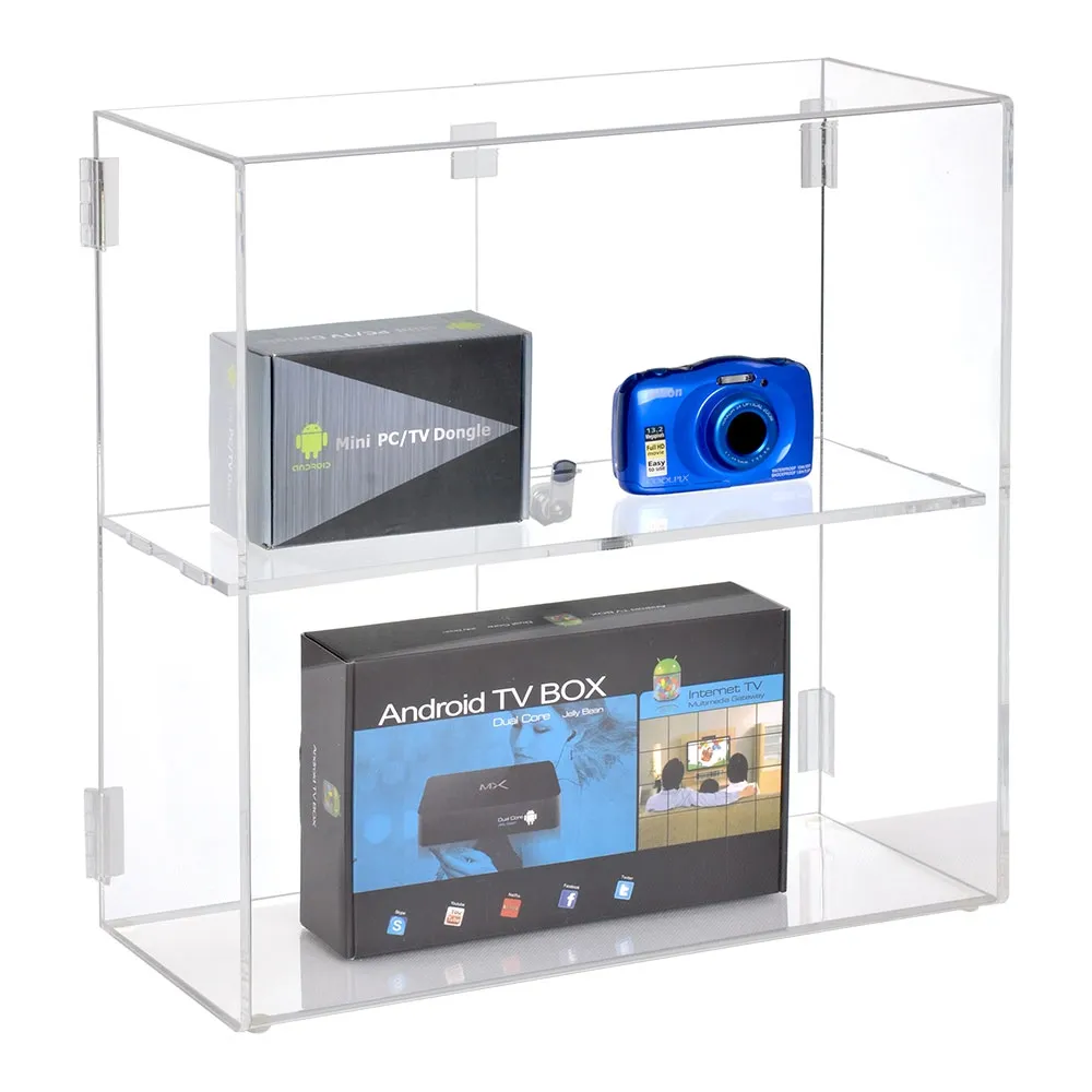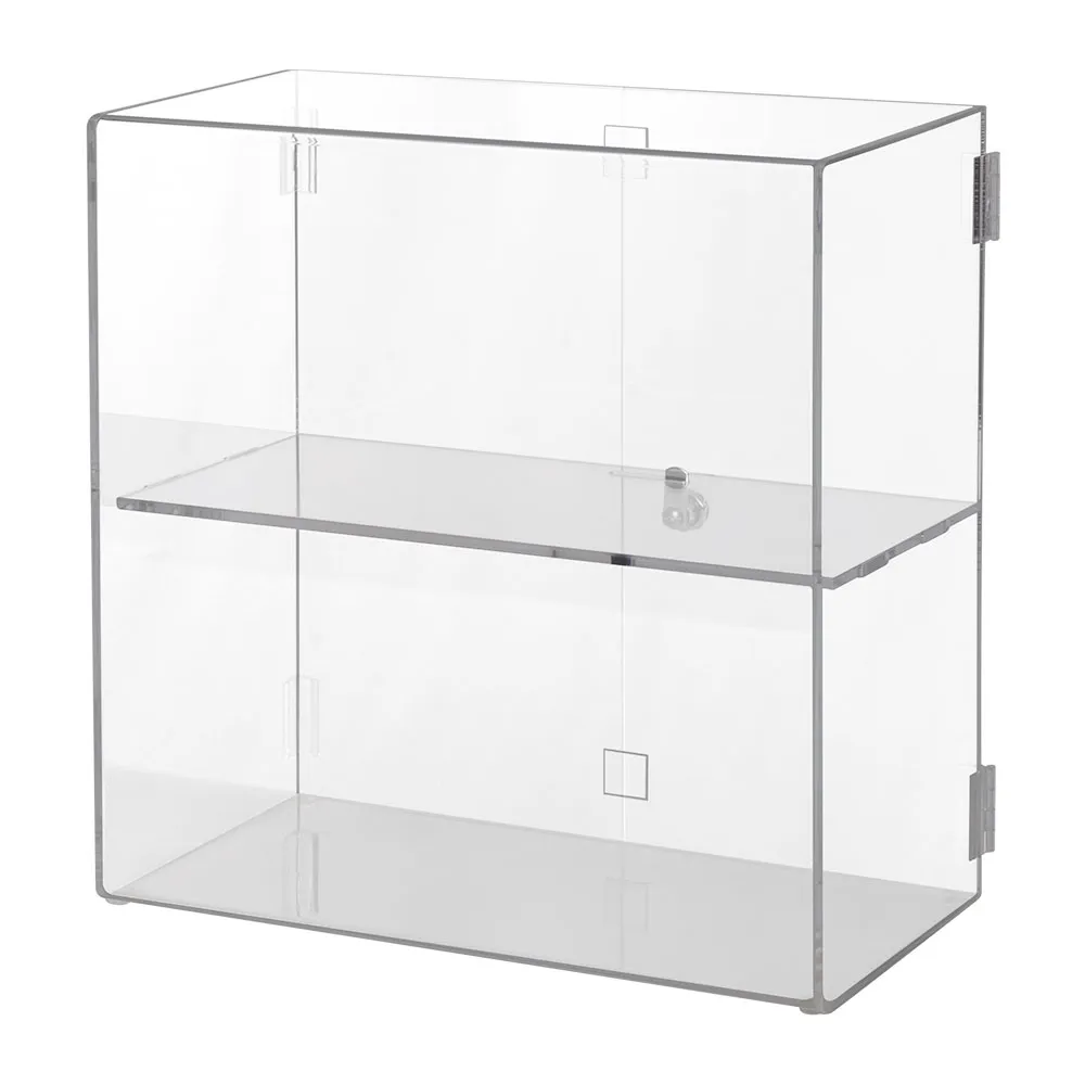 The countertop display cabinet with lock is made from clear acrylic, providing a full view of displayed items whilst protecting them from grime or dust settling. Acrylic offers the visual appeal of glass containers, but at a lighter weight using a more durable material. The acrylic display features (2) hinged doors on the back to provide interior access to the case from behind. This makes it easy for employees to remove displayed items without having to handle the case too much.