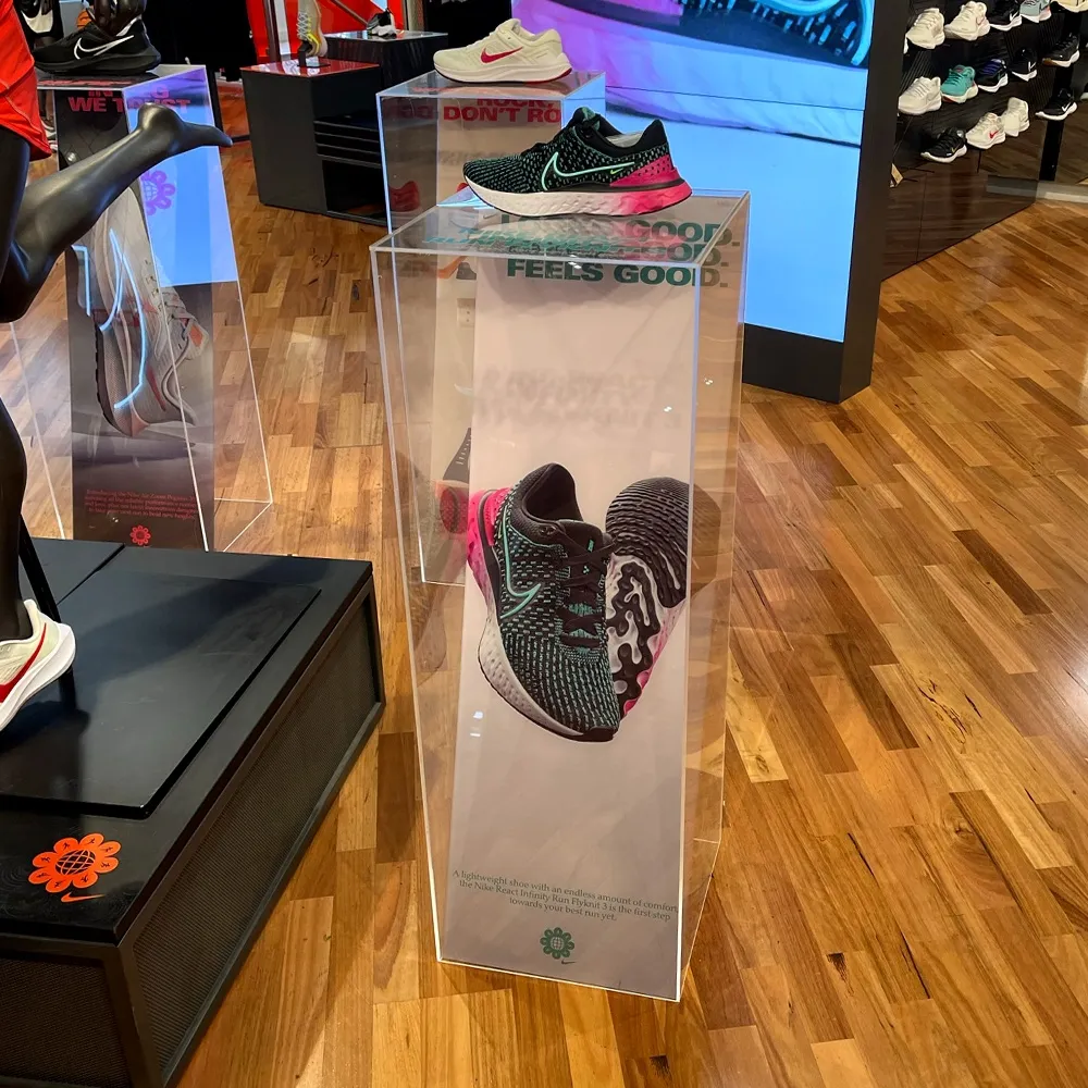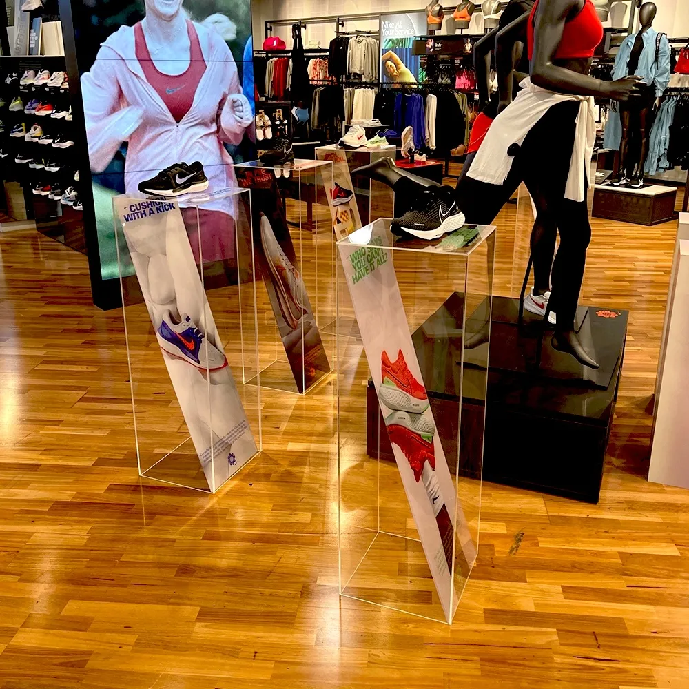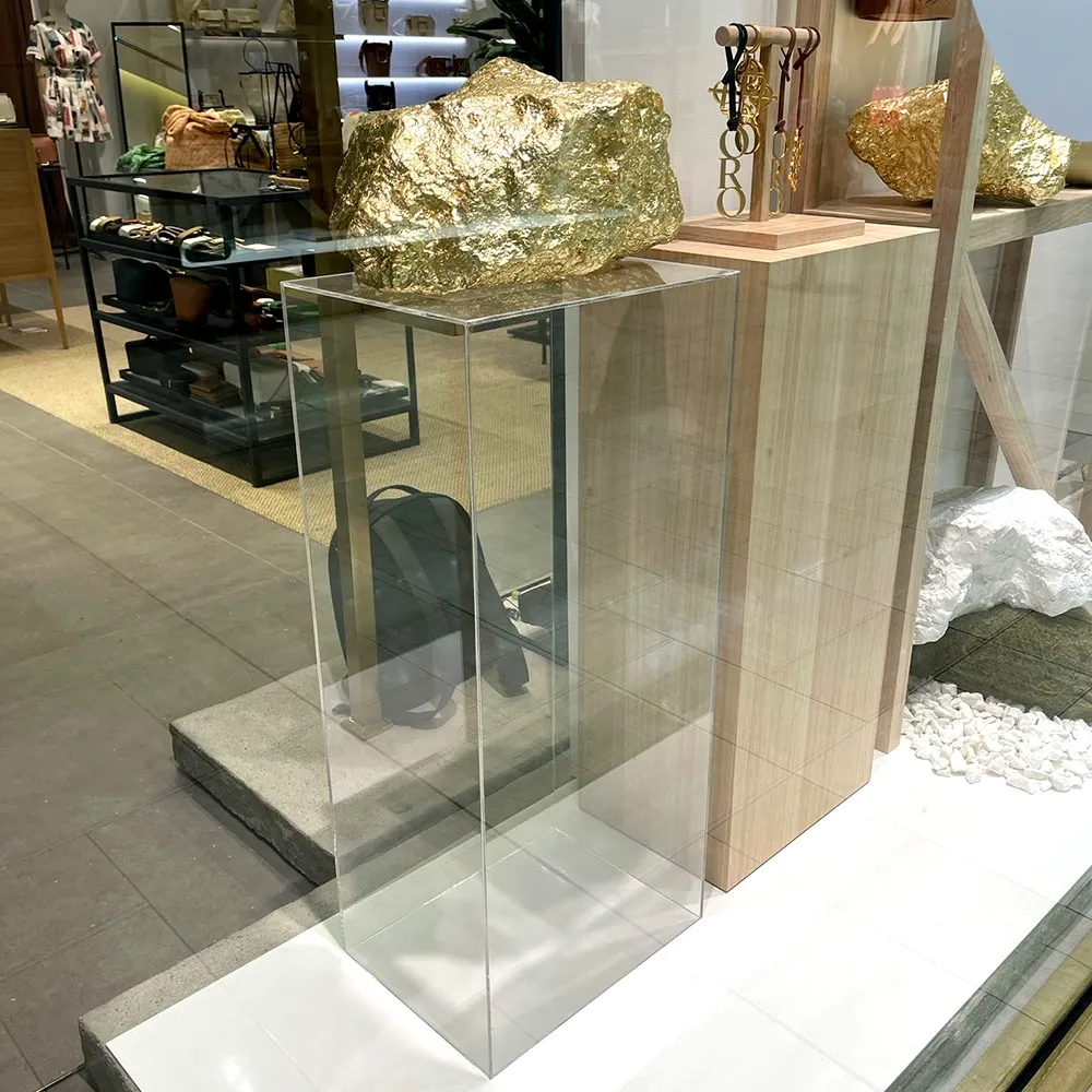 - Clear plinths are 92cm tall, elevating products for easier viewing