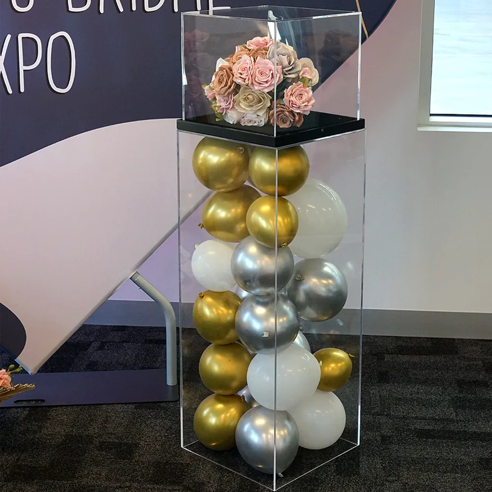 Clear plinths help showcase items in an eye-catching manner that will surely turn heads in any location! The display pedestals have a hollow interior that are used to create a more attractive display, with balloons, seasonal décor, flowers, and even products able to be placed inside and entice passerby to the merchandise area or your booth. The top surface area of this unit is 358 x 358mm, able to display different types of products and their stands. You can have items that weigh up to 16kg in total weight on this pedestal, easily supporting typical goods that businesses showcase!