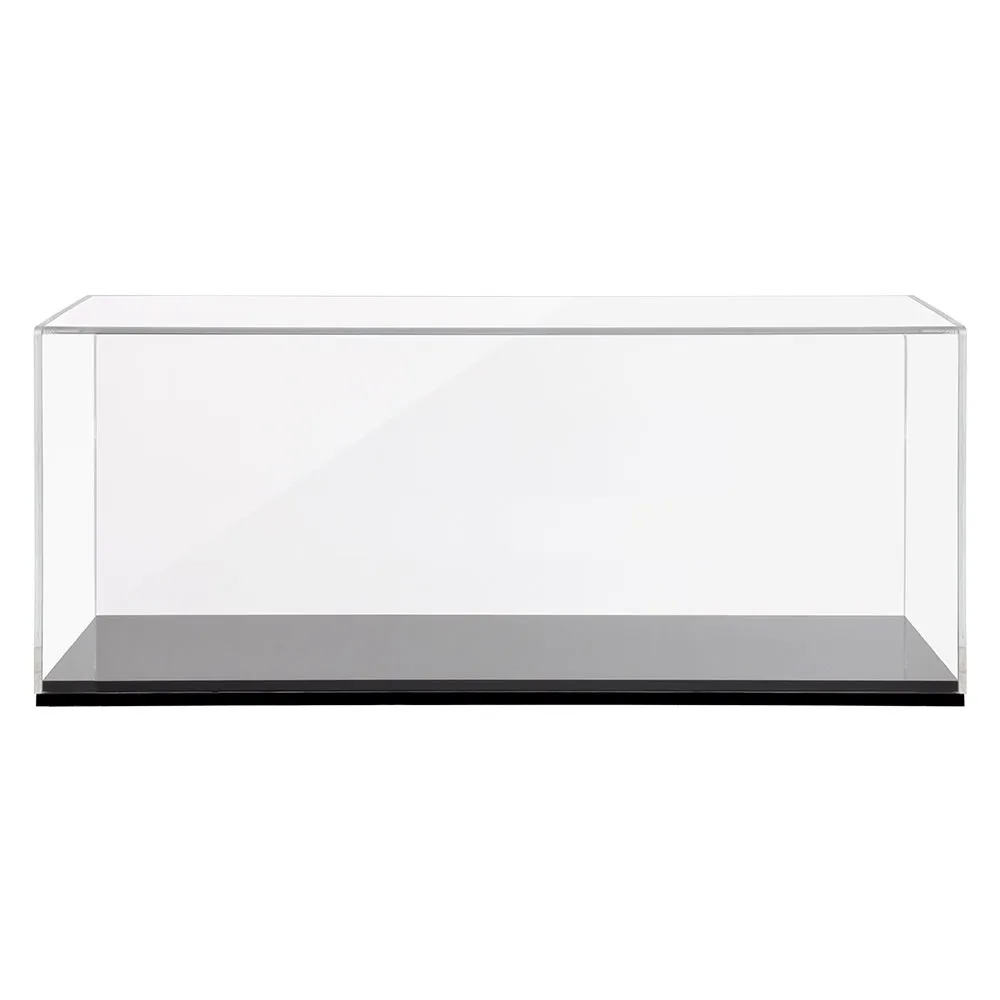 This plastic display cabinet, large acrylic display case is a large rectangular display case perfect for showcasing collectibles, memorabilia, and more within a protected case. The lift off top is made from 6mm thick clear acrylic, providing a durable display at an affordable price that offers a full view of displayed items from any angle. The acrylic has a UV protective coating as well, preventing harmful rays from causing items within the case from fading over time. The case has polished edges as well to provide a really striking display for holding your items.