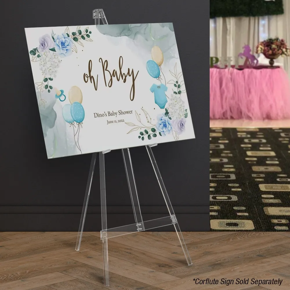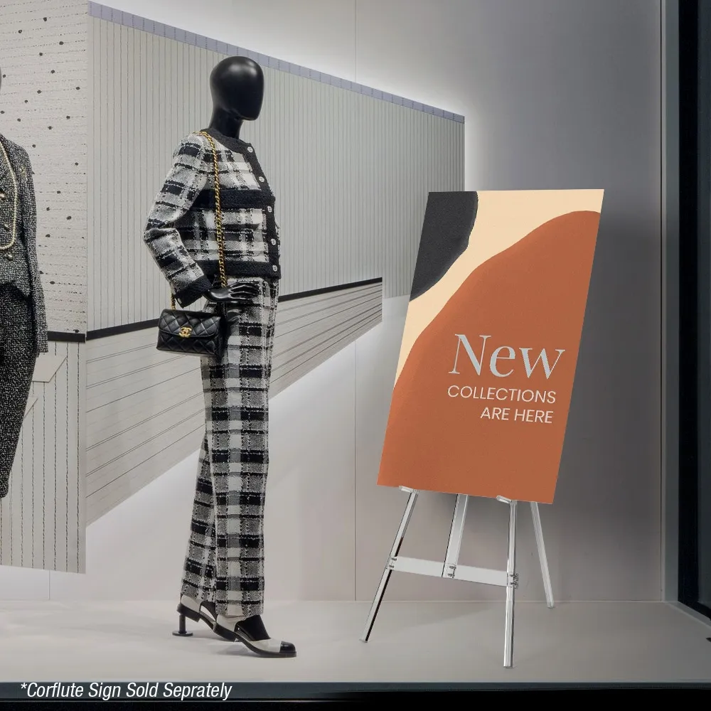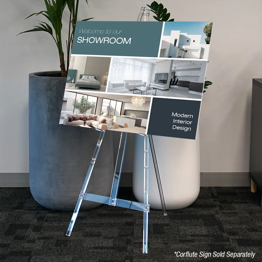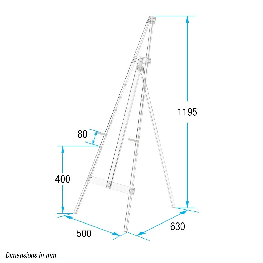 This acrylic easel has a unique look that presents items beautifully in galleries, retail stores, museums, cafes, lobbies and even at functions and weddings! The presentation stand is made from clear acrylic that elegantly displays poster boards whilst focusing attention directly onto the graphics. The stand is 1.2m tall and able to hold a variety of sizes of poster boards thanks to it's adjustable nature. The adjustable back rear leg collapses against the frame for easier transport and storage. The leg can be between 520mm and 530mm when set-up, allowing you to angle the displays as you wish.