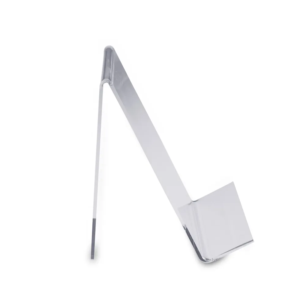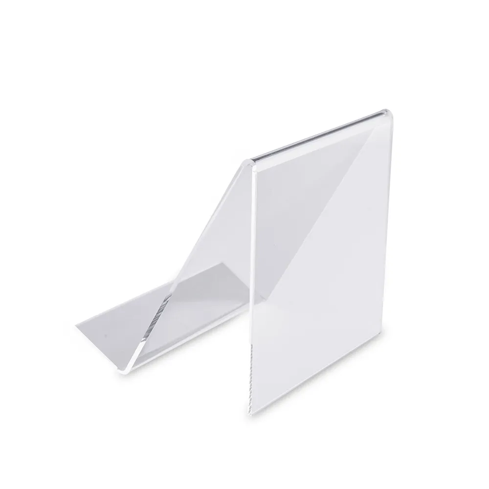 The perspex display stand, like other acrylic table top easels, is made from 2.5mm thick clear acrylic with polished edges for a sleek, modern look. The durable design offers the visual clarity of glass but at a more affordable price and without the risk of shattering. A small raised front lip keeps items from slipping forward, ensuring they stay neatly in place during use. Rounded corners are used for safety, helping to prevent injury while maintaining a clean and professional appearance.