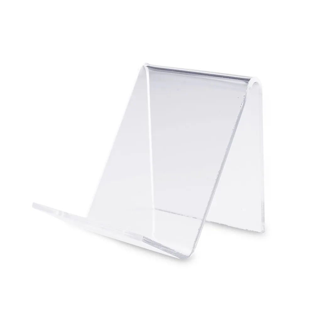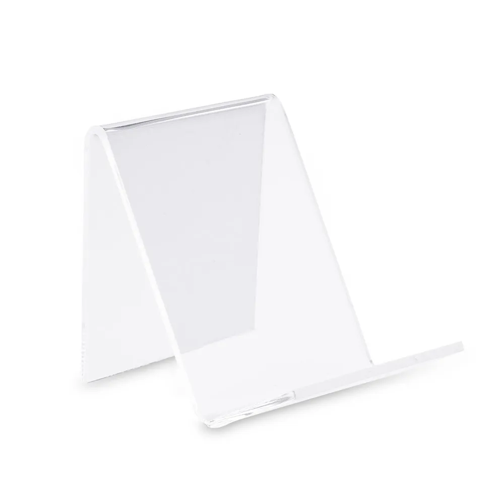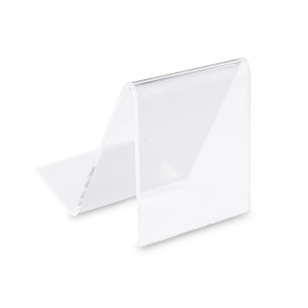 The acrylic easel display, like clear plastic stands, is made from 2.5mm thick clear acrylic with polished edges. This style provides the visual appeal of glass at a lower cost with better durability for continuous use by any business. The front of each stand has a raised lip that prevents items from slipping off the unit whilst on display to keep them in place. These displays feature rounded corners as well for a safety feature that ensures no one gets injured in the slightest when removing an item from the holder.