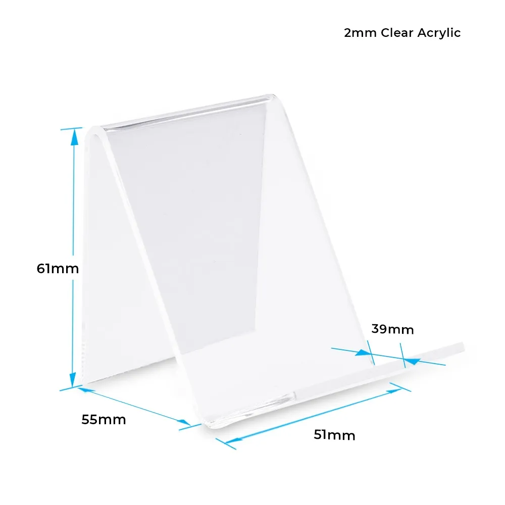 - Acrylic easel display is made from 2.5mm thick clear acrylic with polished edges