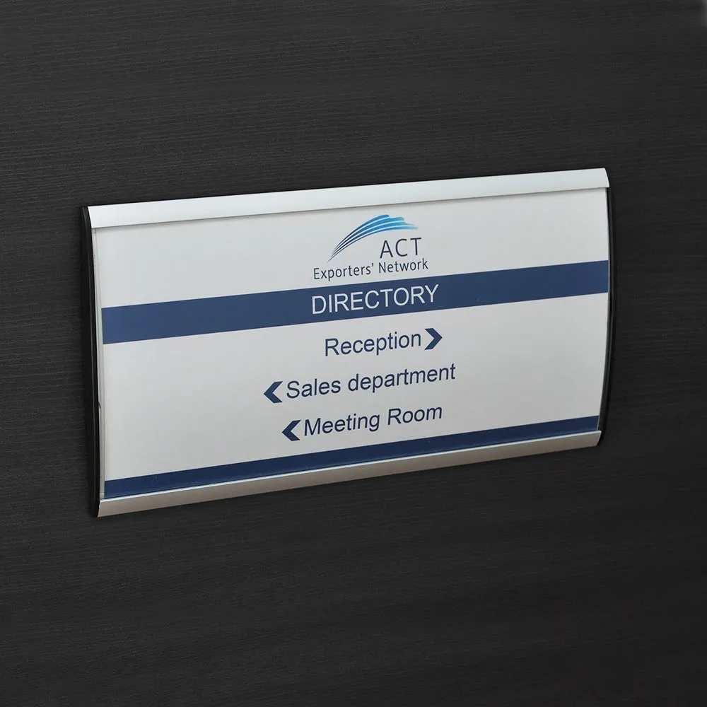 This office sign, also known as wayfinding signs and hallways signage, have a clear lens that will protect your graphic while on display in any location. This lens is non-glare, helping passersby to easily read the sign in most situations and lighting. This office sign is used in medical offices, lobbies, exhibition centres, universities, conference centres, & more as a professional looking display that will help visitors find their way.