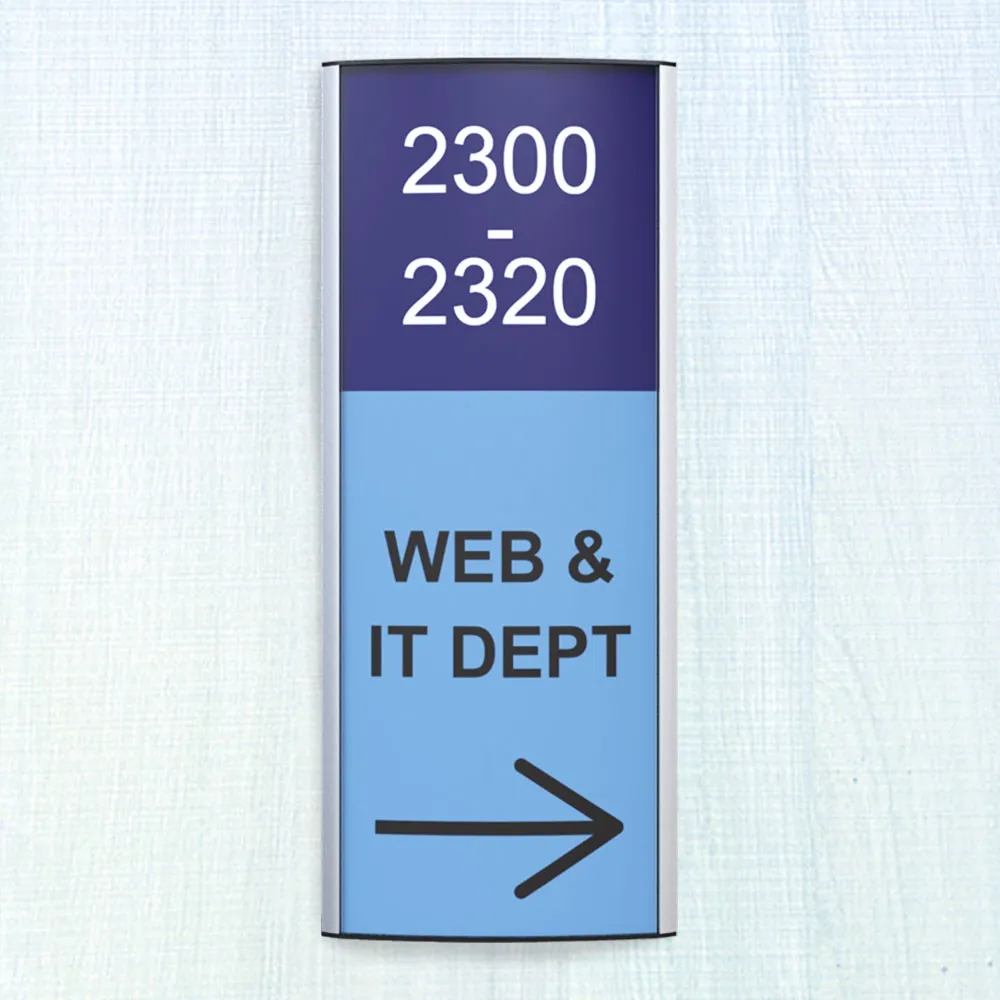 The wall sign, also known as front desk signs and hallway signage, has a clear lens included that covers your graphic and helps protect it from gathering grime and dust. This non-glare cover also helps making reading the graphic easy in different lighting situations. The wall sign is a great addition to any business needing professional signage.