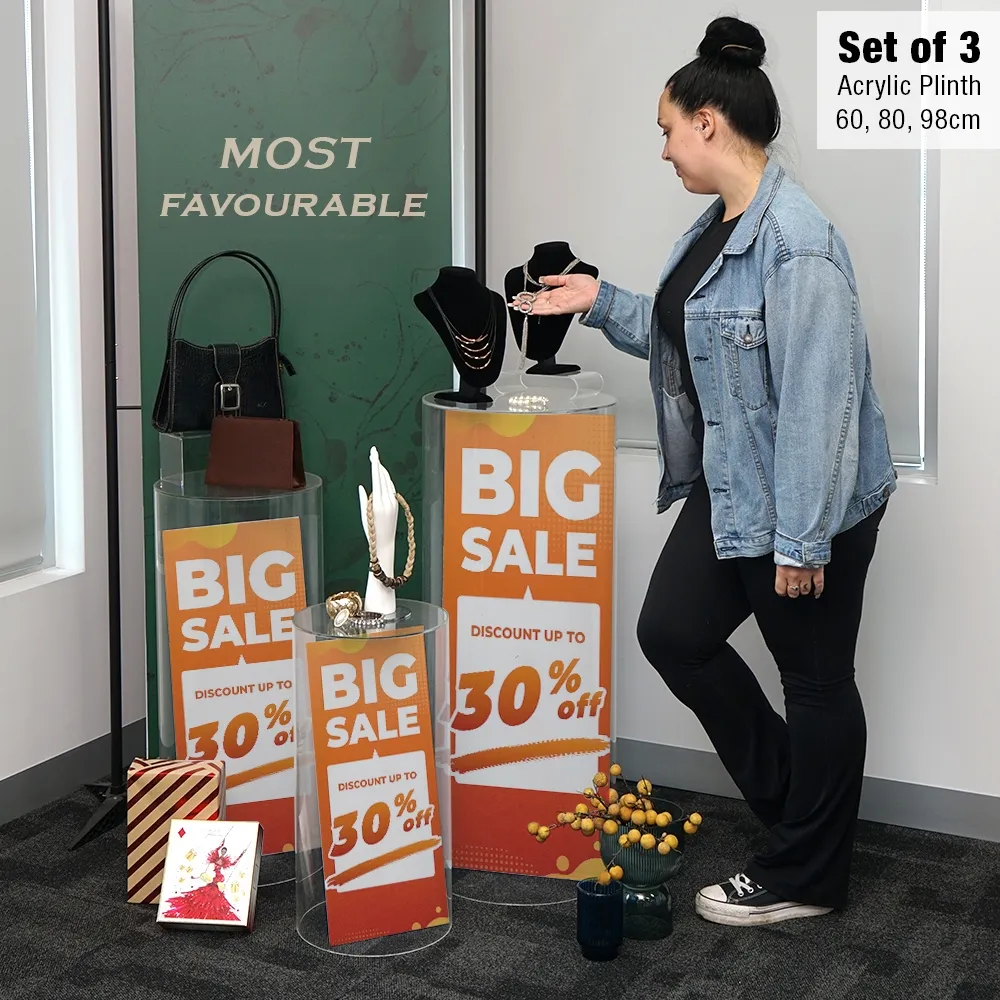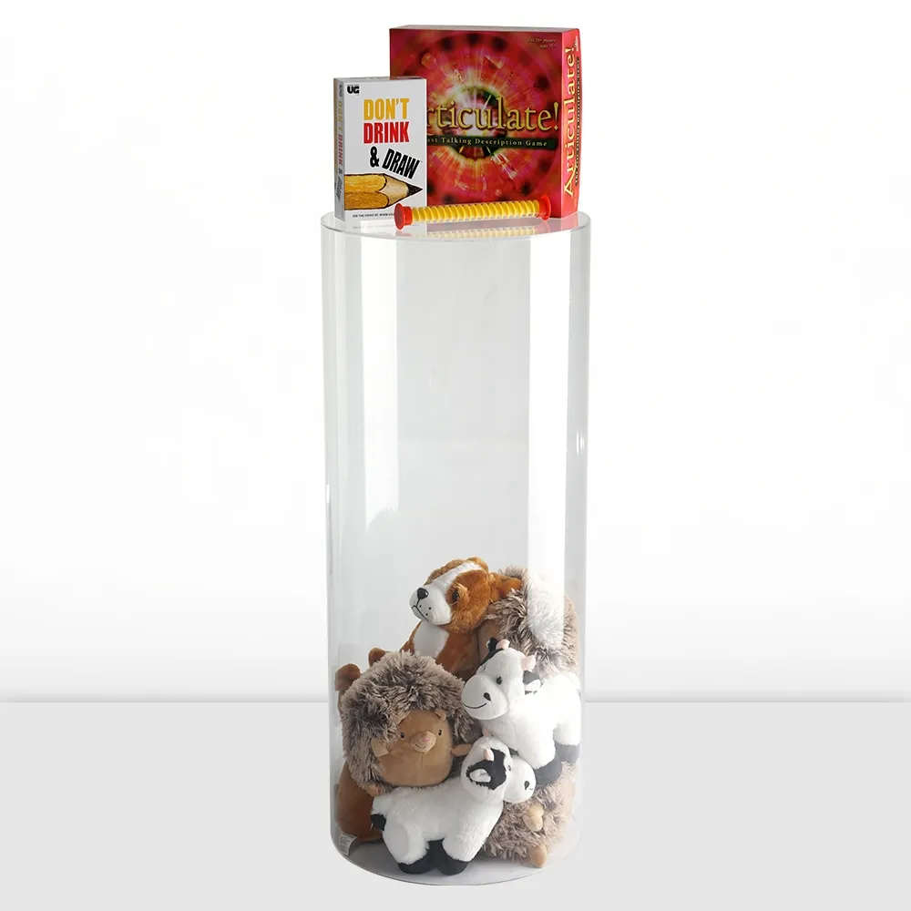 An acrylic plinth, clear plastic pedestal features an open bottom to allow decorations to be placed inside to create a truly eye-catching display that fully utilises the clear build of the structure. This display features a cylinder design for 360° viewing of items placed within the stand and on top, with no sharp edges for safe use in any location. The lightweight build is only 5.5kg to enable any person to easily move the stand into desired position. There are other sizes and styles to choose from as well to create your own configuration that suits the needs of a retail store, office lobby, wedding, shopping centre, art gallery, exhibition booth, or other location.
