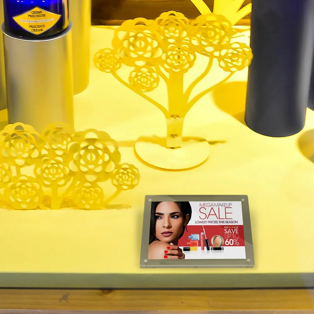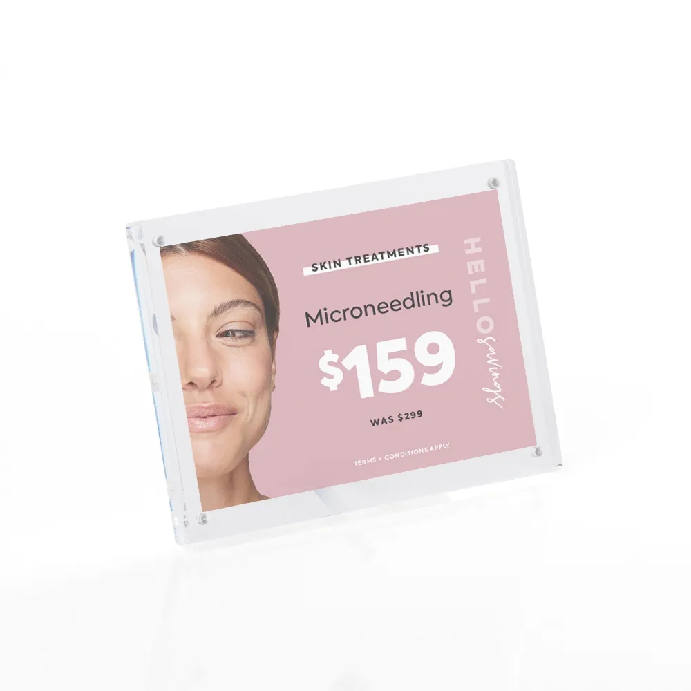 These plastic acrylic frames hold 3½" x 5" (89 x 127mm) signs in portrait or landscape orientation. The custom photo holders are perfect for a number of locations, able to promote goods and services, announce events, or post prices and menus at retail stores, restaurants, museums, bars, cafes, exhibition halls, news agents, and more!