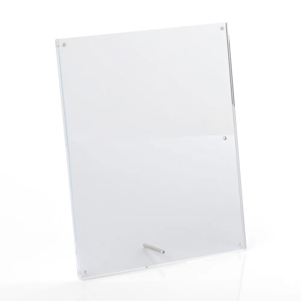 The plastic retail sign holder, perspex signage stand holds 8½" x 11" (215 x 279mm) posters or smaller within the stand. The unique design of this display sandwich the poster within the stand for a frameless look that draws the attention of passersby in any location! The plastic display allows different orientations of graphics as well, allowing your marketing team to choose either format to best fit in with your needs!