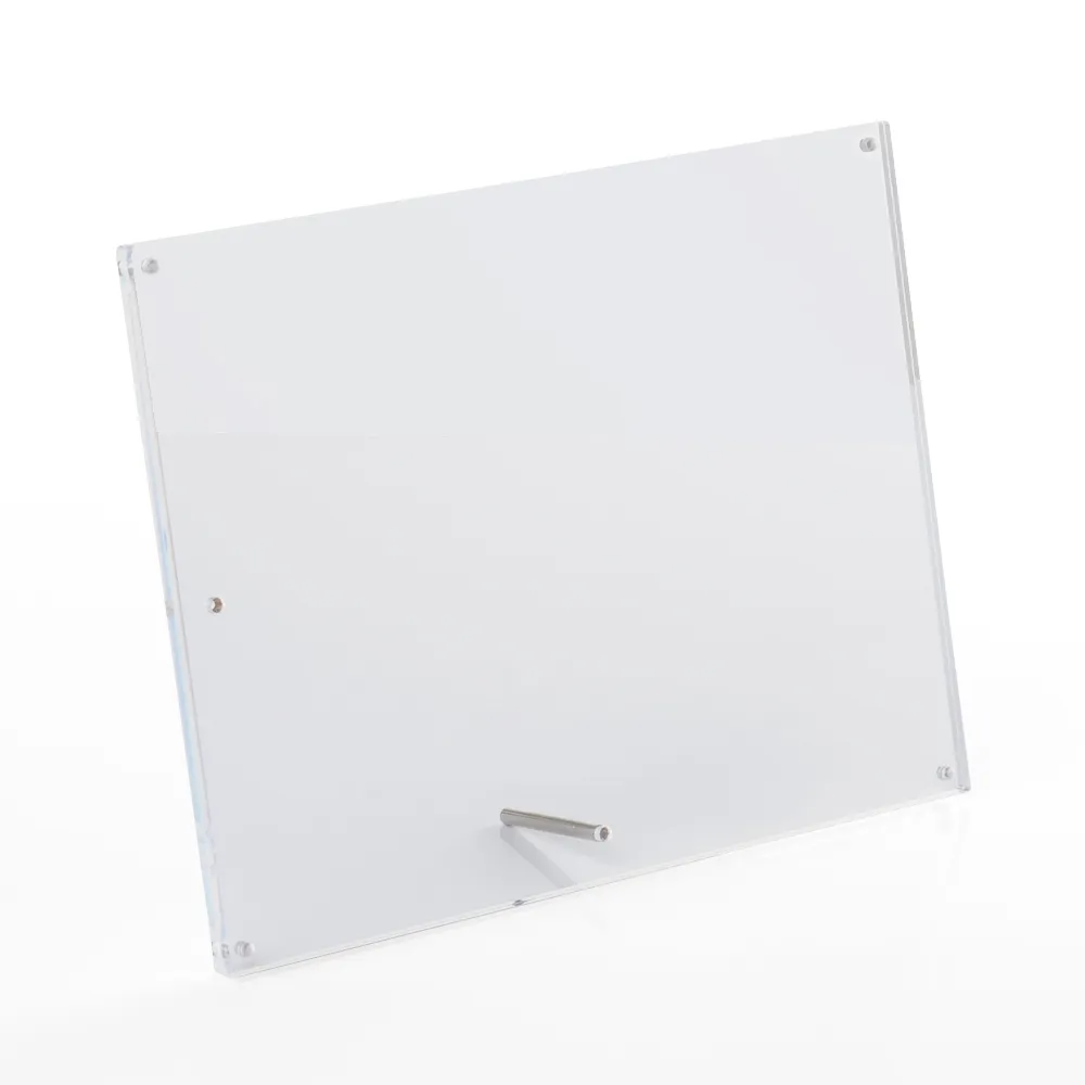 This perspex signage stand is a versatile display, with the included metal support allowing you to adjust the stand to be shown in both landscape and portrait orientations. This support also angles the plastic display to be more easily seen by passersby, whether placed in a retail store, exhibition hall, jewelry store, restaurant, cafe, pub, car dealership, or hotel!