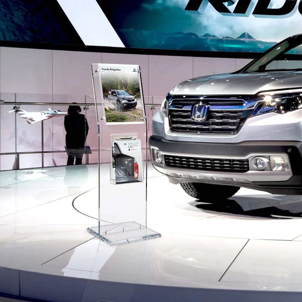 • Edge grip stand-offs securely attach signage holder to acrylic display