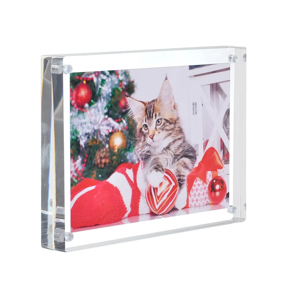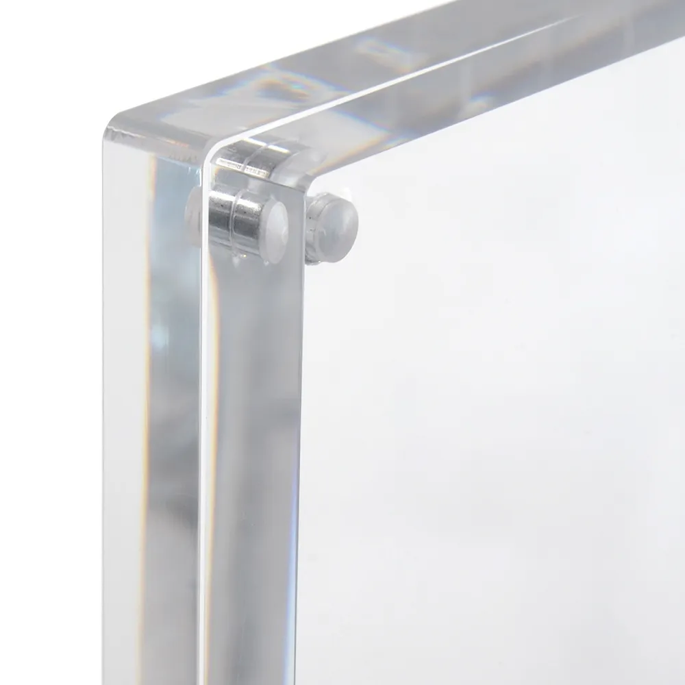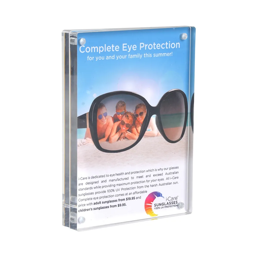 - The acrylic frame uses tiny magnets to sandwich graphics between the 2 thick acrylic panels