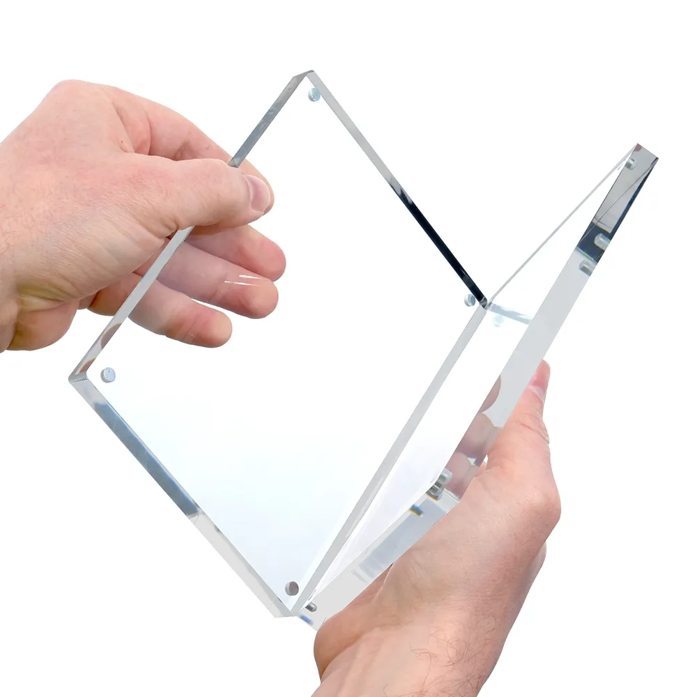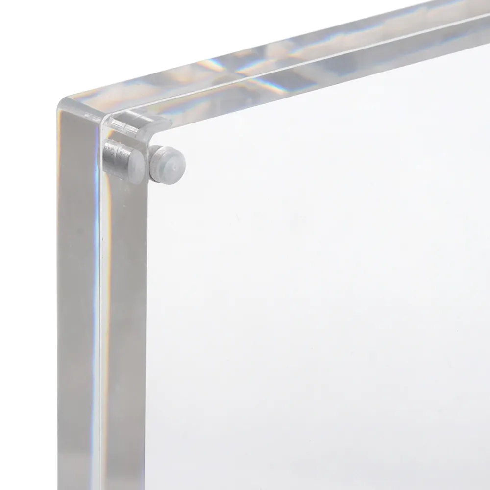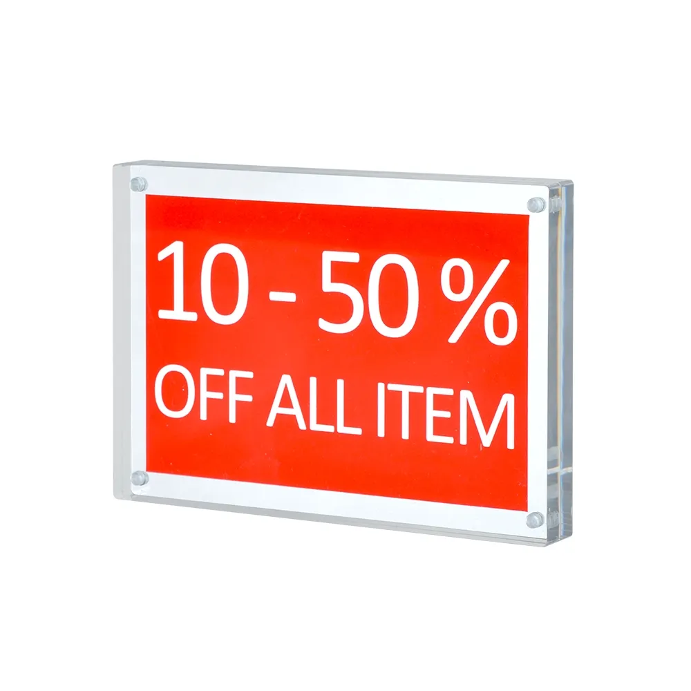 This type of magnetic acrylic frame is commonly used to display prices for expensive items or as table menu displays for restaurants or cafes, but this size is also perfect for displaying a 4" x 6" photograph with a 10mm border around the outside.