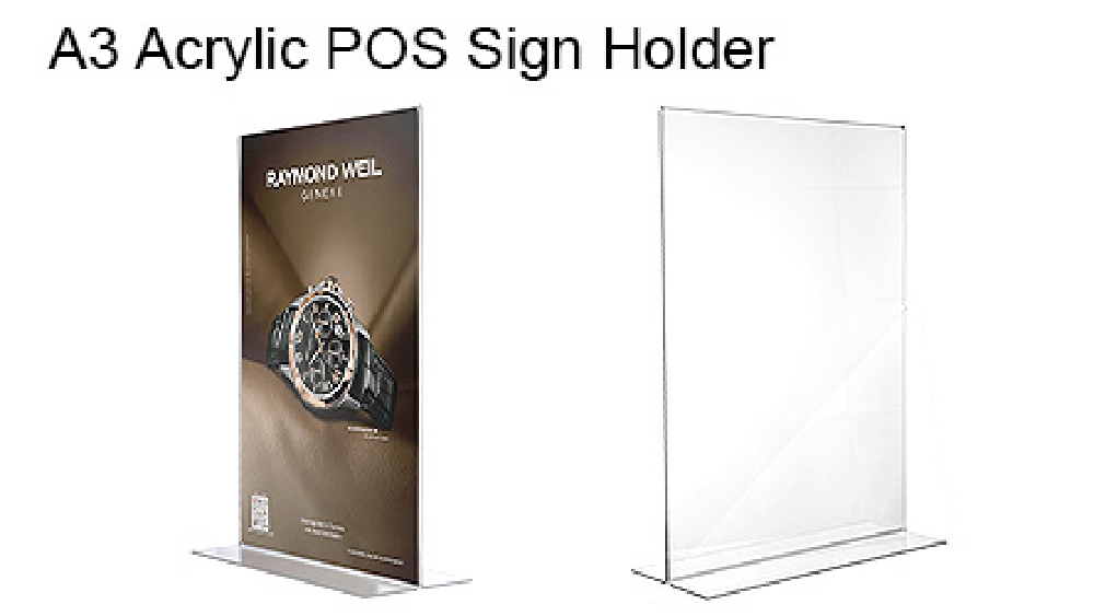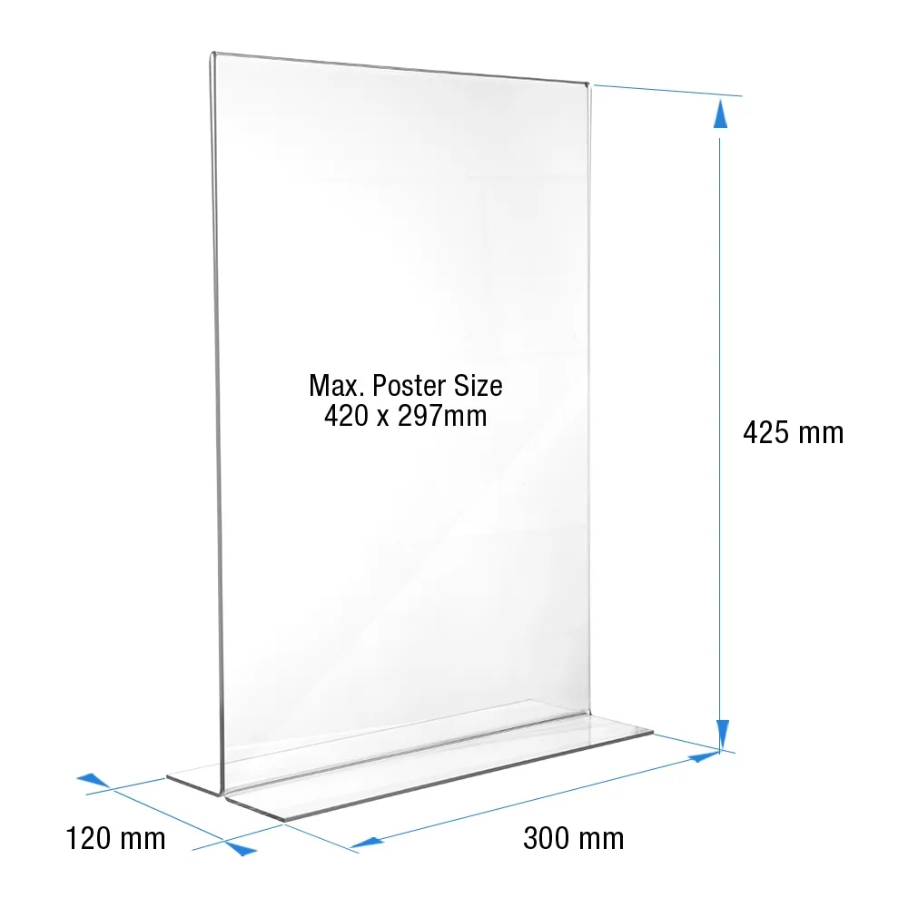 This classic POS sign holder displays a double sided A3 sheet in portrait format (420mm x 297mm). This style of holder has been effectively used for years, but now Slimline Warehouse is making them available at a wholesale price to the public.