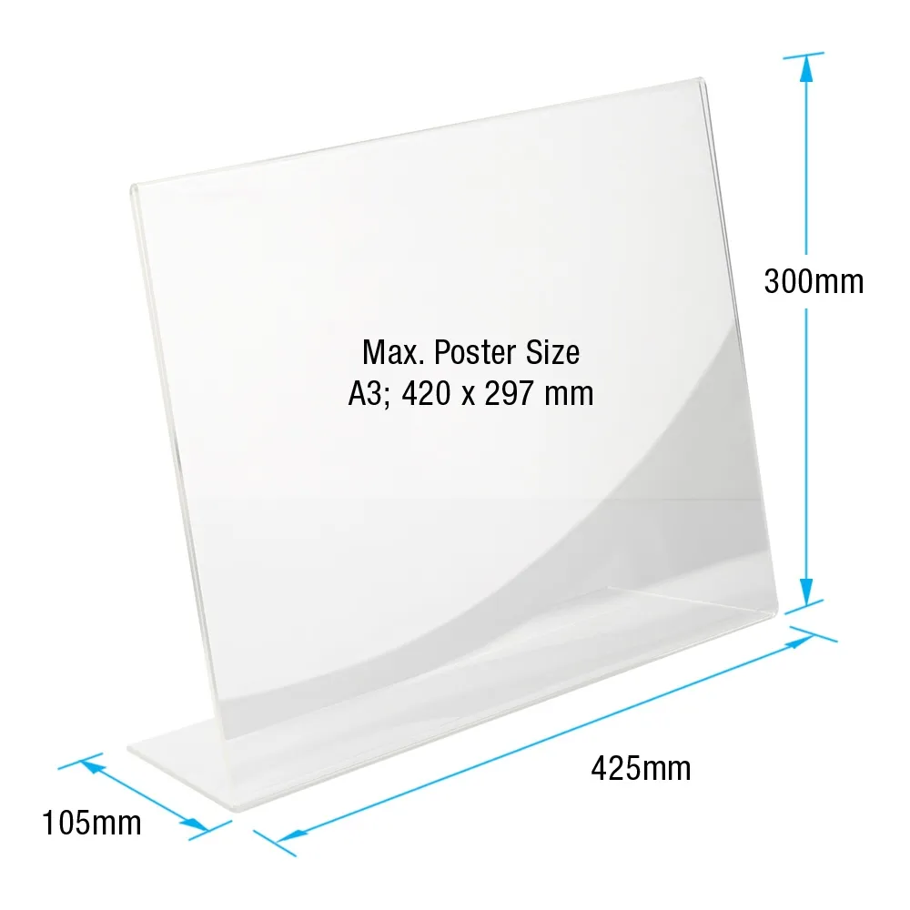 - A3 acrylic sign holder is dual-sided for visibility in multiple directions at once