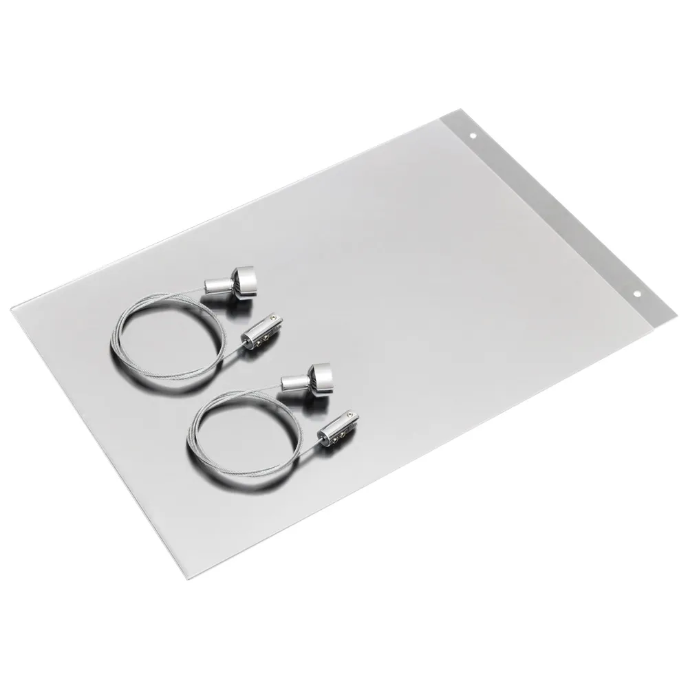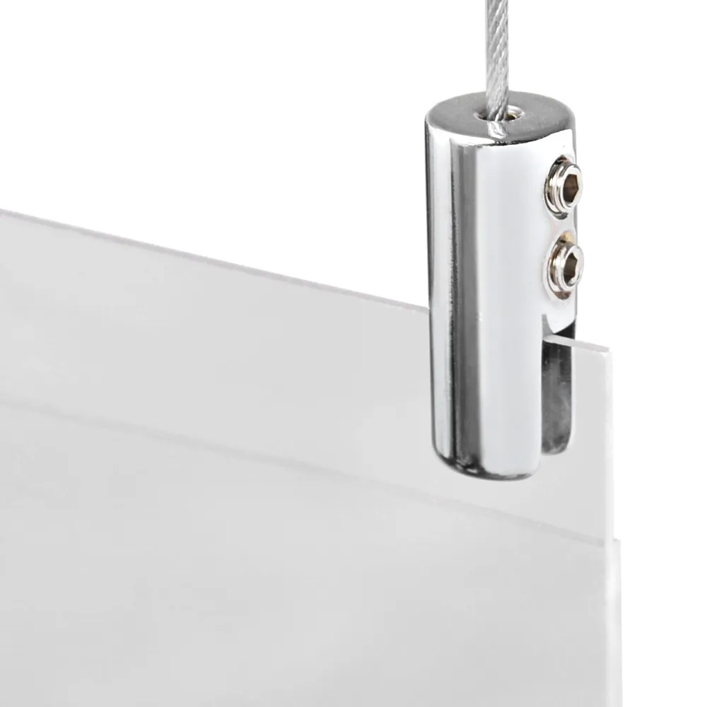 These poster holders are manufactured using clear acrylic 2mm thick clear acrylic giving you a unit well suited to any retail environment. They are simple to use and posters are easily updated by sliding in A3 portrait posters into the side of the unit. The hardware is attached by simply screwing the ceiling anchor to the ceiling and then attaching the cable stop to the ceiling anchor. The cable can be cut to desired length for your convenience.