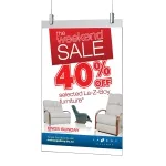 Hang these hanging poster holders within your premises in these clear acrylic holders. These poster holders are A3 portrait in size and are double sided which make them the perfect addition to any small or large scale store. The poster holders or window displays grab the attention of customers when hung strategically around the shop. Poster holders displayed in this way means that you have more floor space for merchandise too.