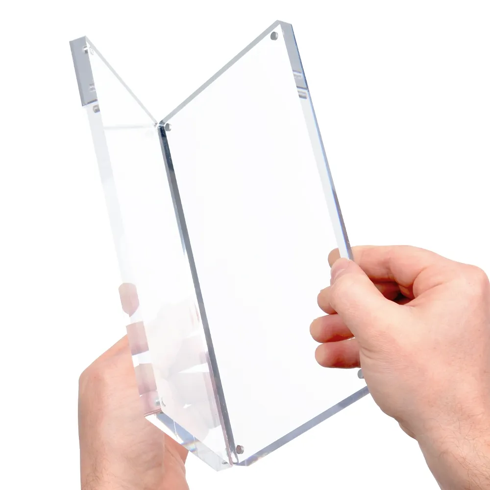 Super aggressive rare earth magnets are recessed into the acrylic frame, firmly securing the sheets together, while still ensuring that it’s quick and easy to pull the sheets apart to change the poster on display.