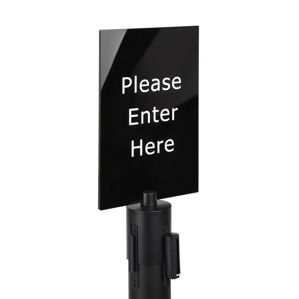 - "Please Enter Here" designed for placement atop retractable stanchions