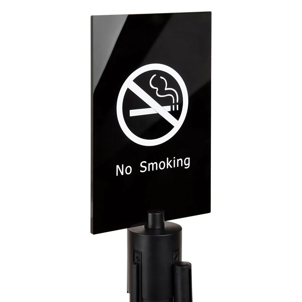 The stanchion sign features a black acrylic sign that is 5mm thick and measures 178 x 277 mm to easily be seen whilst patrons are in the queue. The barrier post signage holder has the phrase "No Smoking" inscribed in white lettering in order to easily be read by visitors to your business.