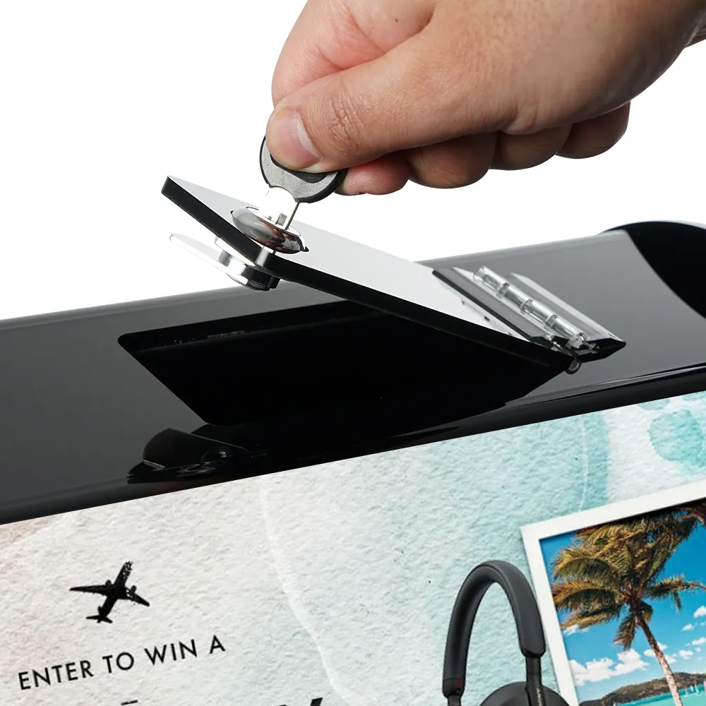 - Locking door prevents contest tampering, with large opening to remove contest winners