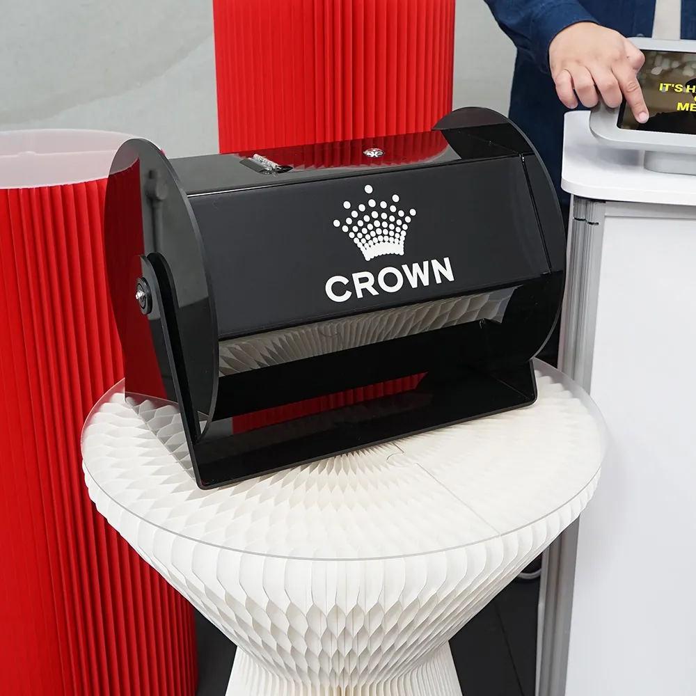 Competition barrels help generate excitement in most locations, whether trying to entertain employees at company events or draw the attention of passersby in retail environments! This raffle drum has a counter top design, with the 220 x 415 x 325mm size easily fitting atop different tables whilst leaving plenty of space for prizes to be shown and more. The barrel spins freely 360° to ensure entries are thoroughly mixed up prior to picking a winner. Forms are placed into via an 8 x 10mm slot on one side of the barrel. A sliding bar closes this slot to ensure nothing falls out when the mixer is being spun.