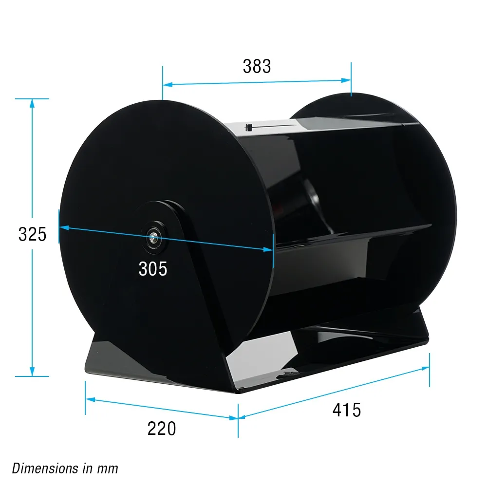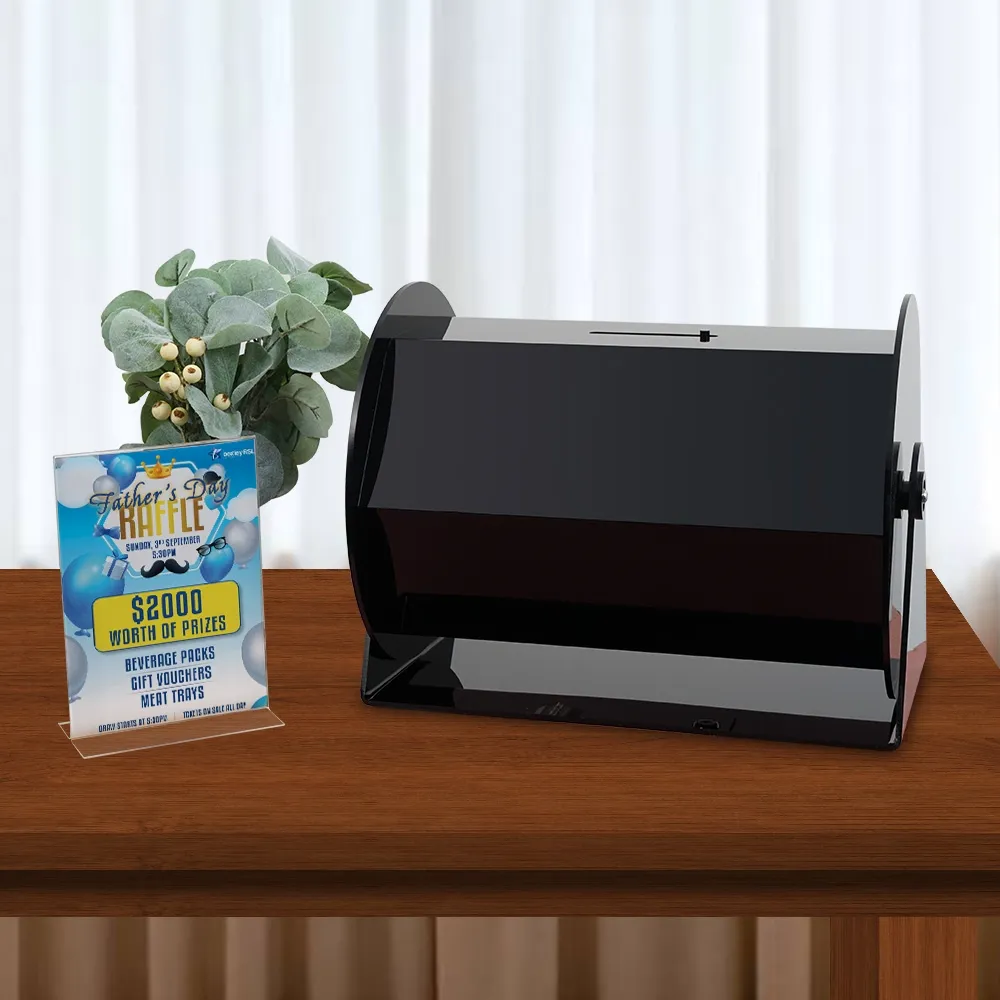 - Rotating raffle drum is designed for countertop use with a 220 x 415 x 325mm overall size