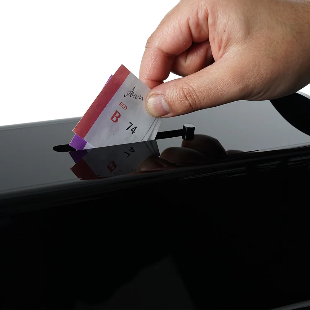 - 360° Spinning design randomises entries inside to provide a fair drawing