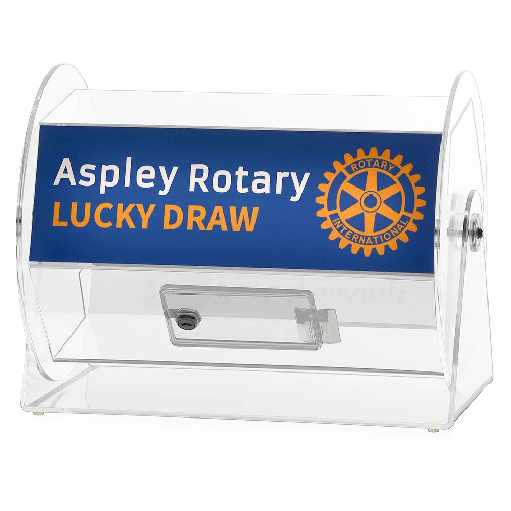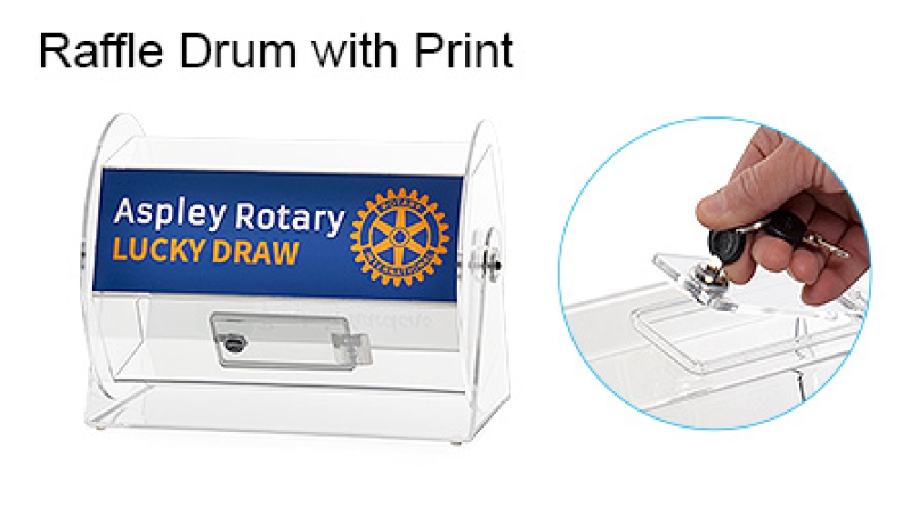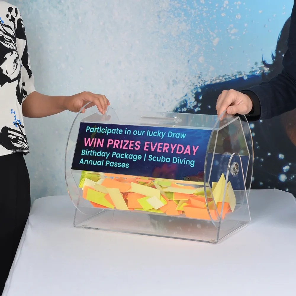 - Acrylic raffle drum spins freely 360° to easily mix up entry forms!