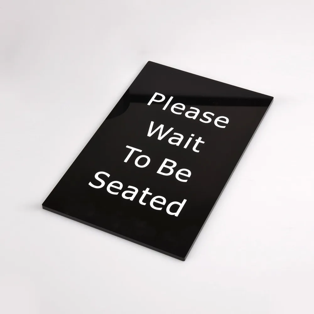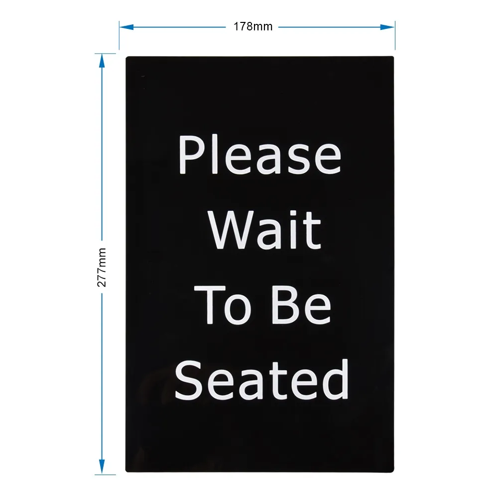 This sign for retractable barrier posts is used in restaurants, cafes, and other sit down venues to help alert guests to wait for staff to assist them. The sign has "Please Wait To Be Seated" in a large white font to be easily readable against the black acrylic display. The 5mm thick signage has polished edges to provide the look of glass at an affordable price that is more durable for use in public areas. The sign fits perfectly within the channel of our stanchion top sign holder, with a hex screw used to secure the display into place. Slimline Warehouse offers same day shipping to anywhere in Australia with this and most other in stock products if purchased by 3pm AEST, buy online today!