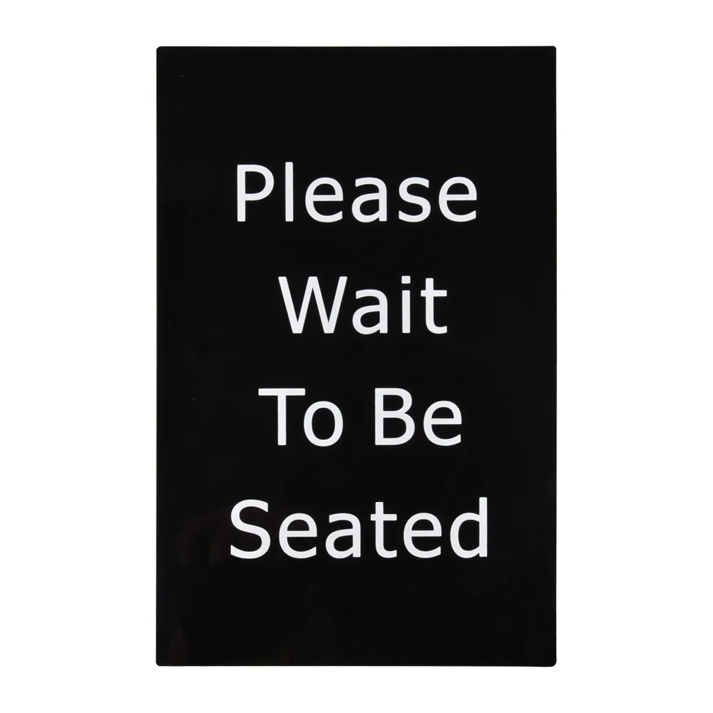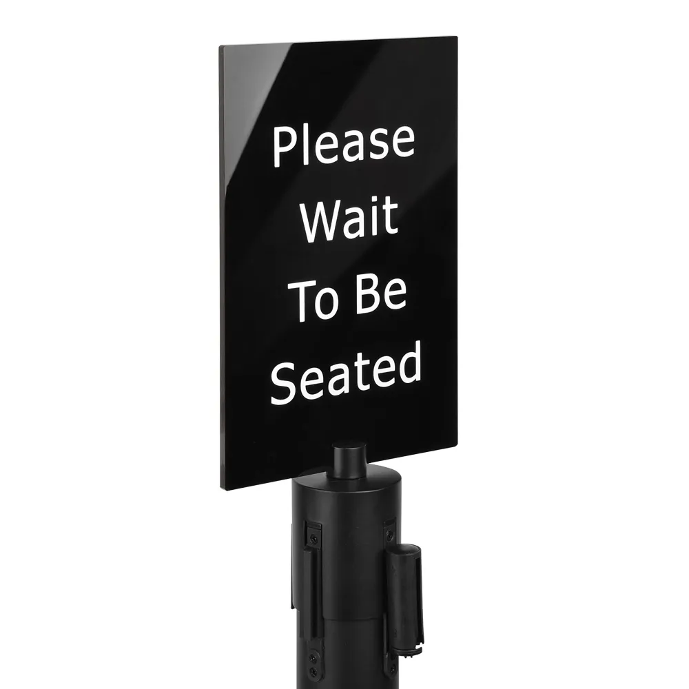 - "Please Wait To Be Seated" signage designed for placement atop retractable stanchions