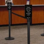 The stanchion sign frames measure 277 x 178mm, easily fitting into the included holder that fits on top of crowd control stanchion. Only an allen wrench is needed to secure the sign to the top of the post. To attach the holder to a queue pole, no tools are necessary, with the holder also allowing the retractable belt and connectors to still be used in order to best set-up your queue or section off an area at insurance agents, retail stores, travel agencies, and more.