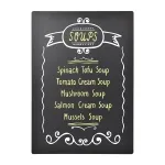 This 2 sided chalkboard has a textured blackboard surface that works with both liquid chalk markers and chalk sticks in any colour to create a vivid display that is eye-catching. The restaurant display is A3 (420 x 297mm) to offer plenty of space for writing your items down in larger lettering to ensure easy reading. The versatile display can be used in portrait or landscape orientation as well, and is ideally used with edge grip stand offs for wall mounting, or easels and pavement signs as a floor standing sign.