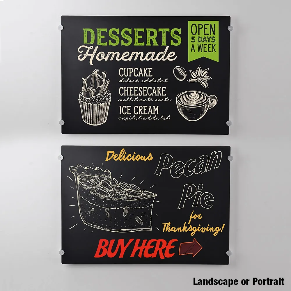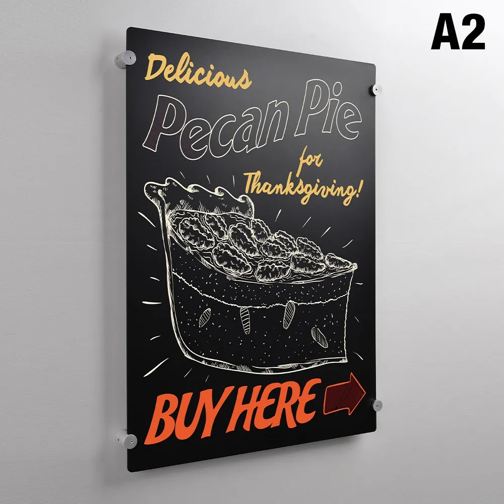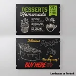 This A2 blackboard is used to display menus, advertisements, announce sale specials and direct visitors to their area at your location! The menu black board is A2 (594 x 420mm) standard sized to offer plenty of room to create message with large lettering that is easily readable. This display is versatile as well, able to be mounted in portrait or landscape orientation in order to best fit in with your décor whether a museum, cafe, exhibition hall, pub, university, or retail store.