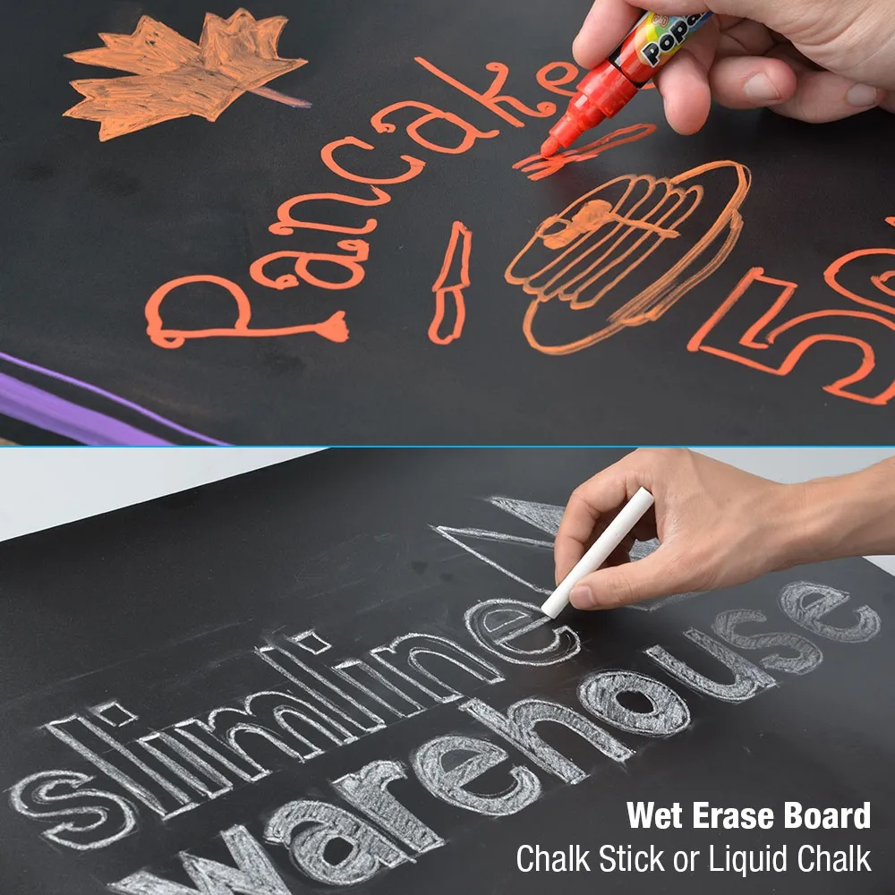 - Write on board using liquid chalk markers or chalk sticks in any colour!