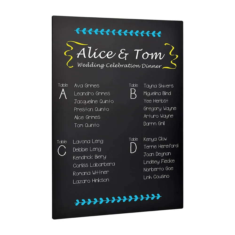 The double sided chalkboard sign, like a write on blackboard, makes it easy to have multiple messages without having to fully erase the board and start over. Work in a cafe that does breakfast and lunch? Write the breakfast menu on one side and the lunch menu on the back and flip over to show customers the proper information. The board can be displayed in portrait or landscape orientation as well, letting you freely design in whichever format is most appropriate.