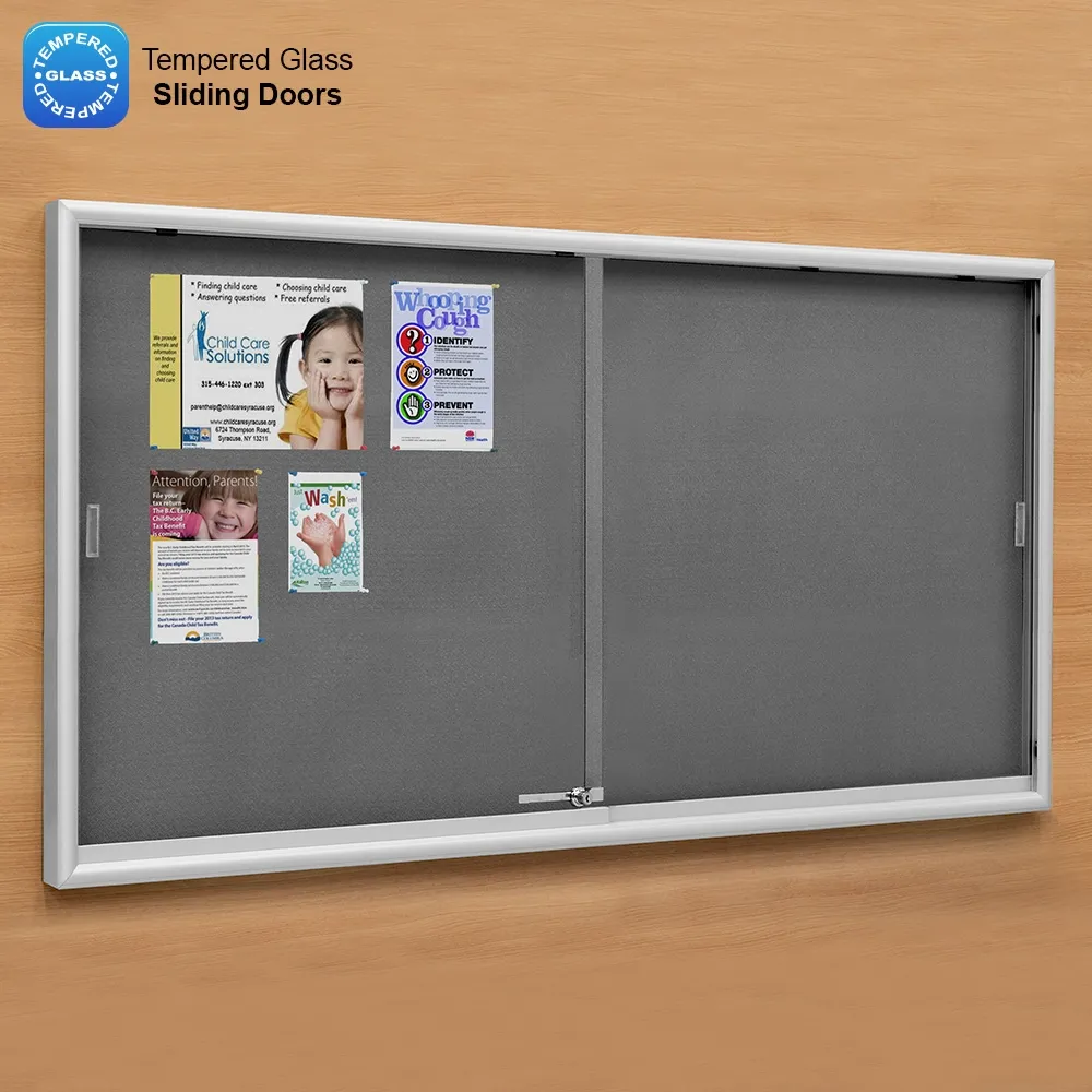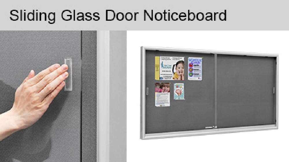 • Sliding doors are made from shatter resistant tempered glass for a durable & safe noticeboard