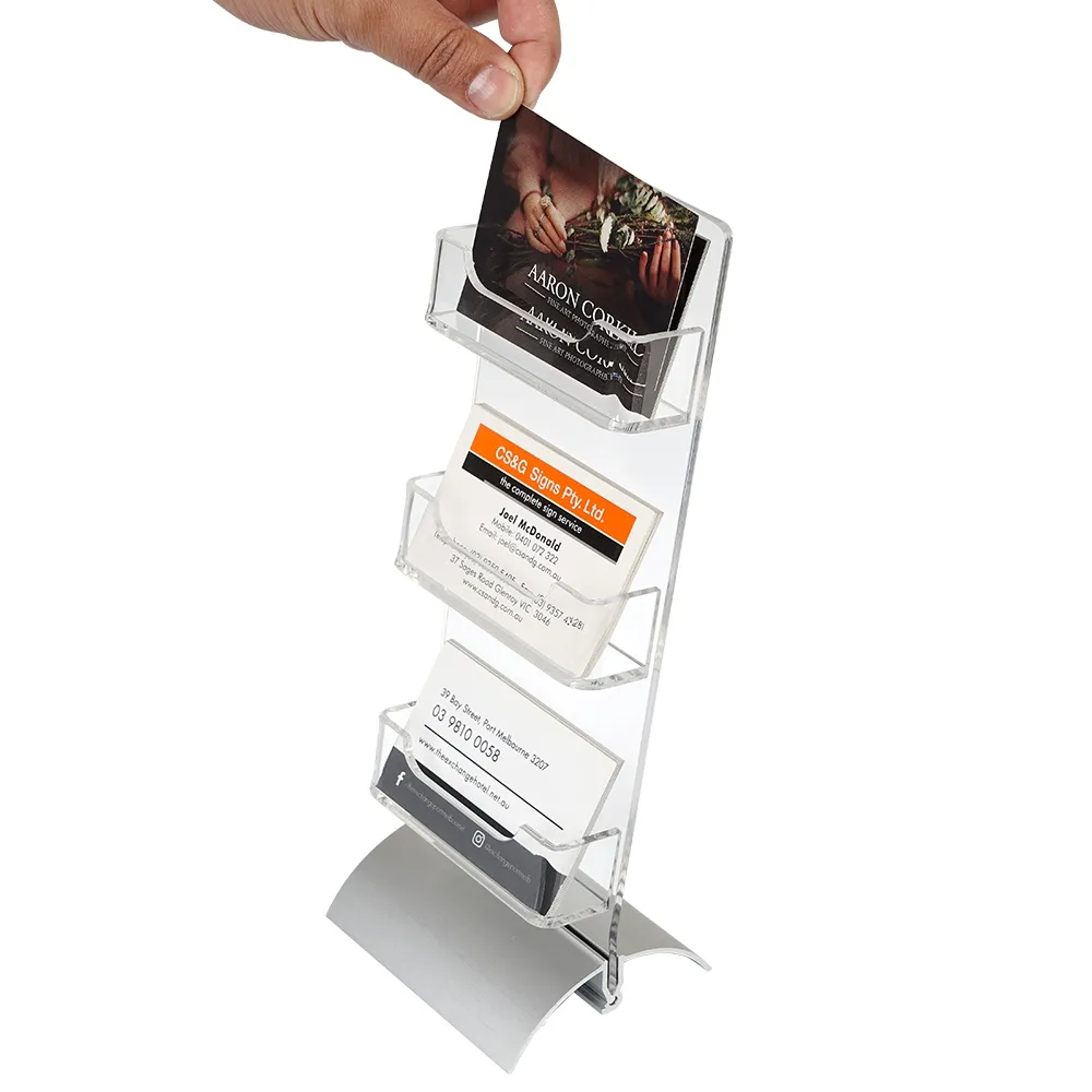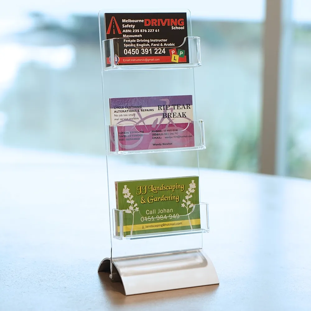 3 Pockets Acrylic Card Display on Desktop