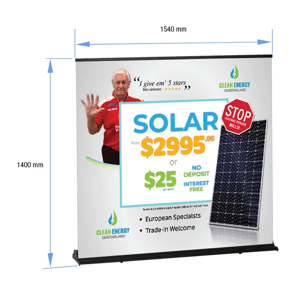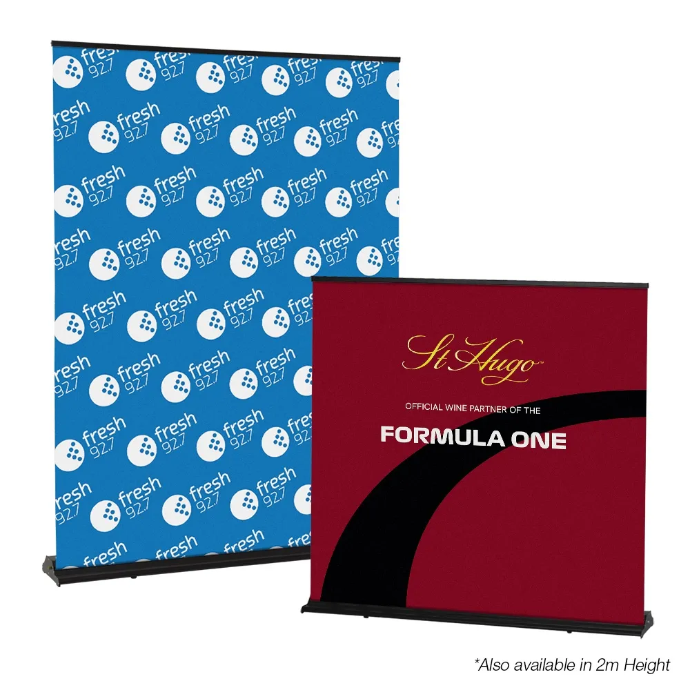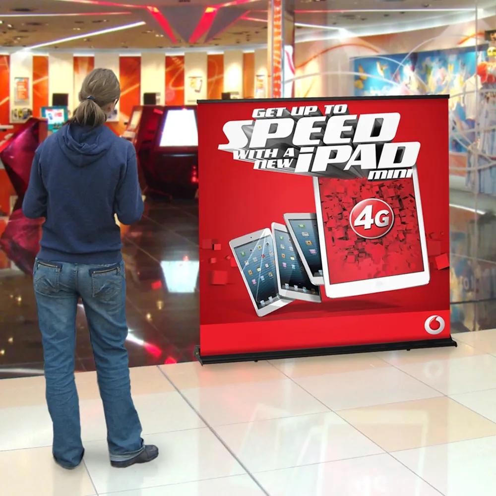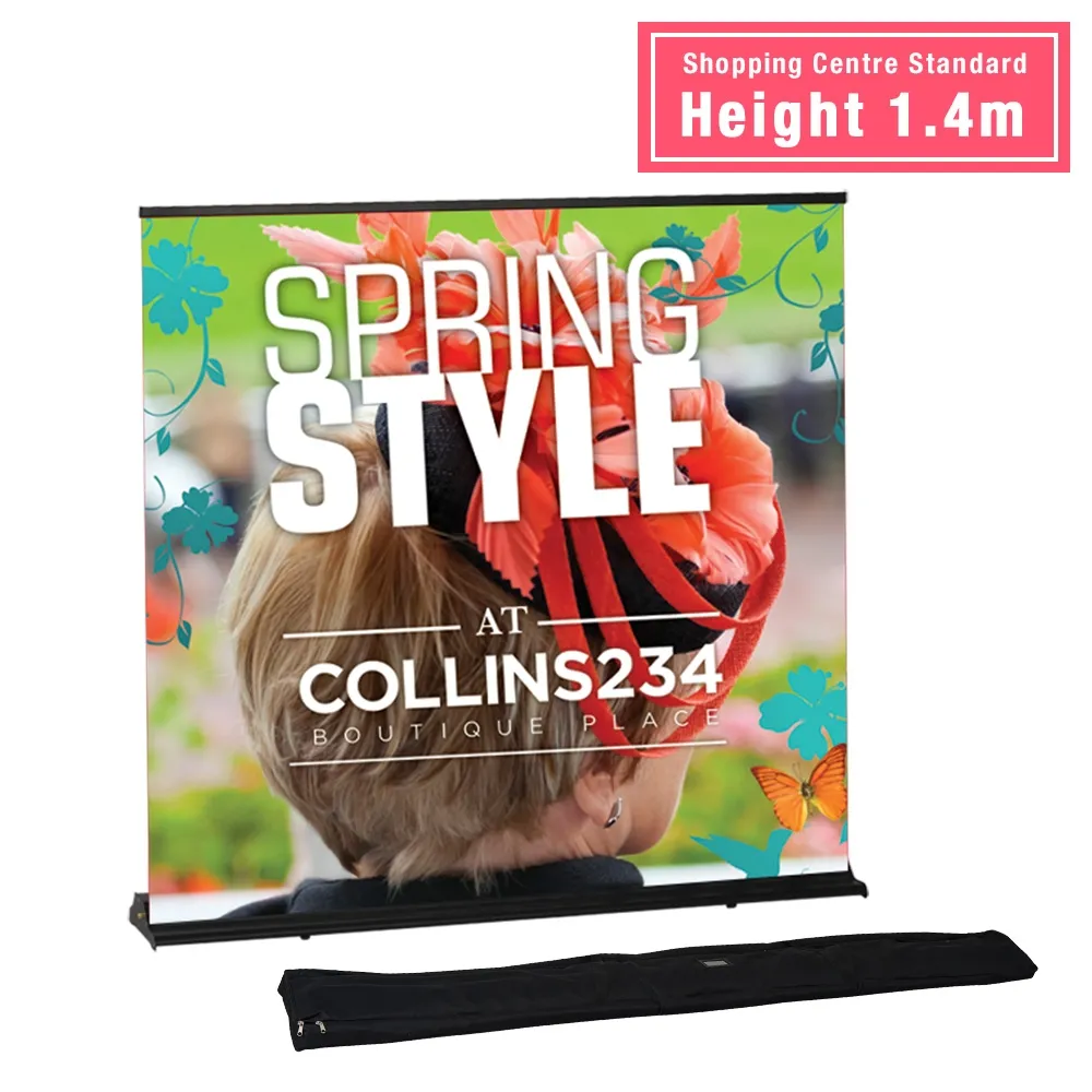 - Banner stand uses large format 1500 x 1400mm graphic at standard shopping centre height!