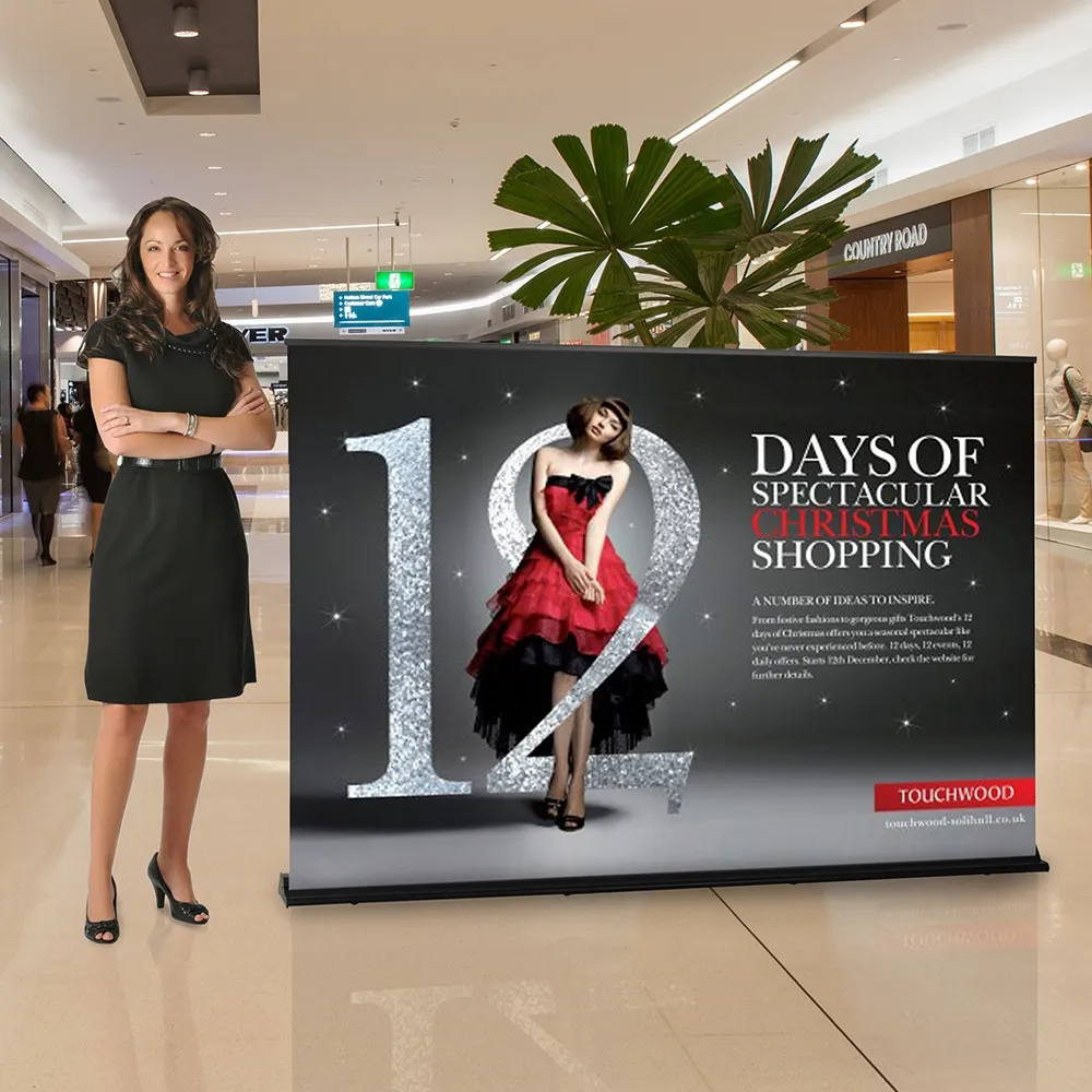 - Wide display has huge 2390 x 1400mm graphic, ideal height for use at shopping centres