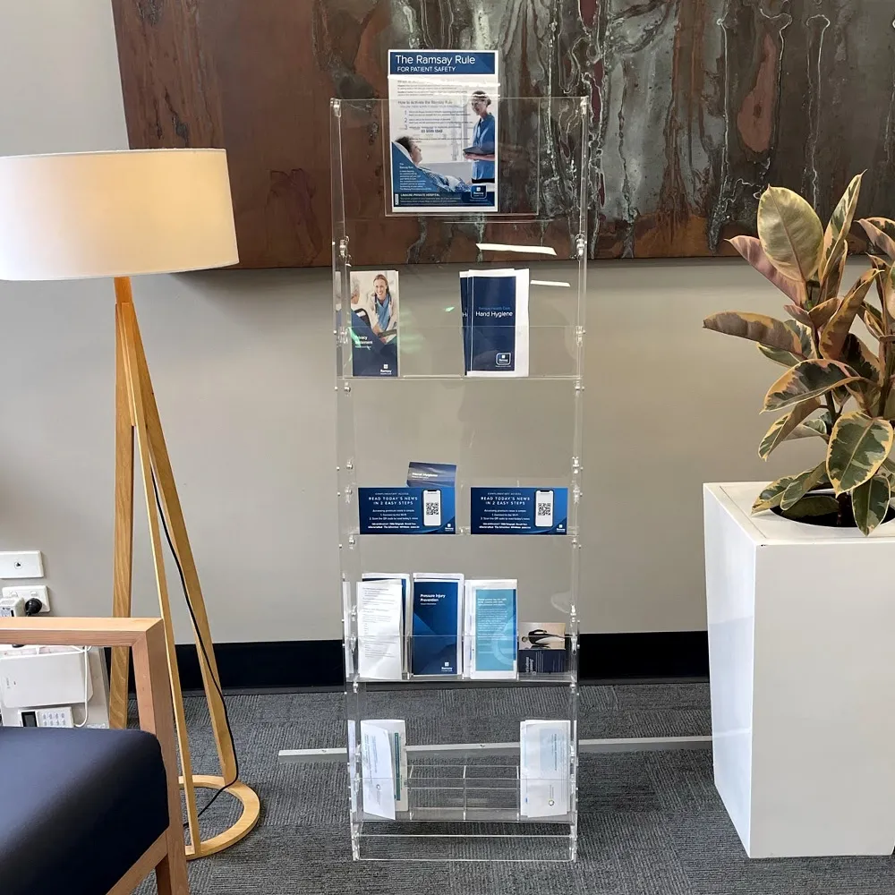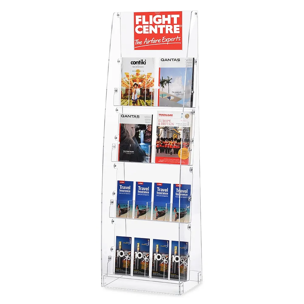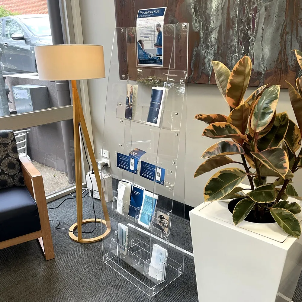 - Unique clear acrylic brochure display uses 5mm thick plastic on sides & base